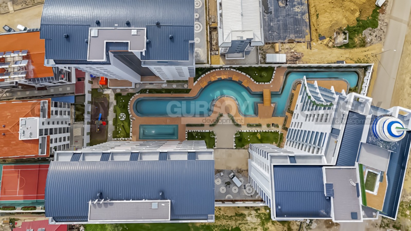 Комплекс предлагает жителям полноценную инфраструктуру на уровне гостиничного сервиса. В вашем распоряжении: открытый и крытый бассейны, фитнес-зал, сауна, хамам, зона отдыха, детские площадки и многое другое. Для удобства — круглосуточная охрана, генератор, лифты и собственный пляжный сервис.