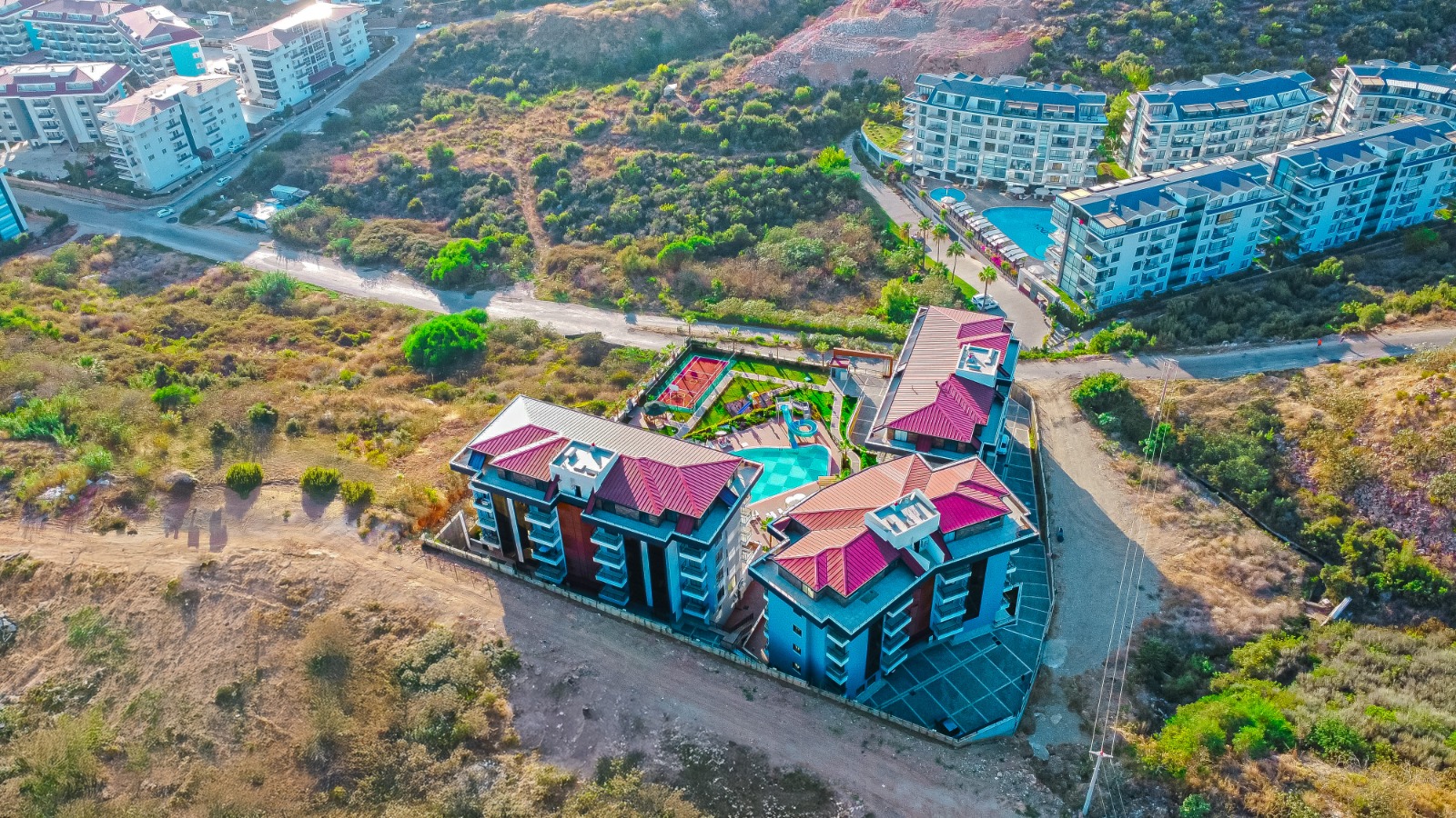 Проект состоит из 3 блоков с 92 жилыми единицами. Комплекс предлагает широкий выбор удобств, включая большой открытый бассейн, крытый бассейн, сауну, хамам, фитнес-зал, детскую площадку, а также бар у бассейна и водную горку. Для активных людей предусмотрены спортивные площадки, включая баскетбольную зону. Комплекс идеально сочетает в себе комфорт курорта и высокие инвестиционные перспективы. Дополнительно имеется крытая парковка в блоках A и B.