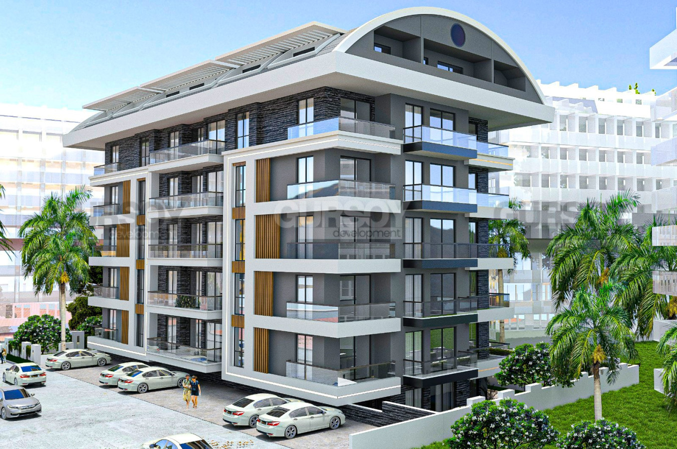 Отличное предложение от компании Gürsoy Development - ваш надежный партнер в области недвижимости в Алании. Если вы ищете идеальное место для отдыха или инвестирования, предлагаем вашему вниманию новый жилой комплекс в 500 метрах от пляжа Кейкубад.