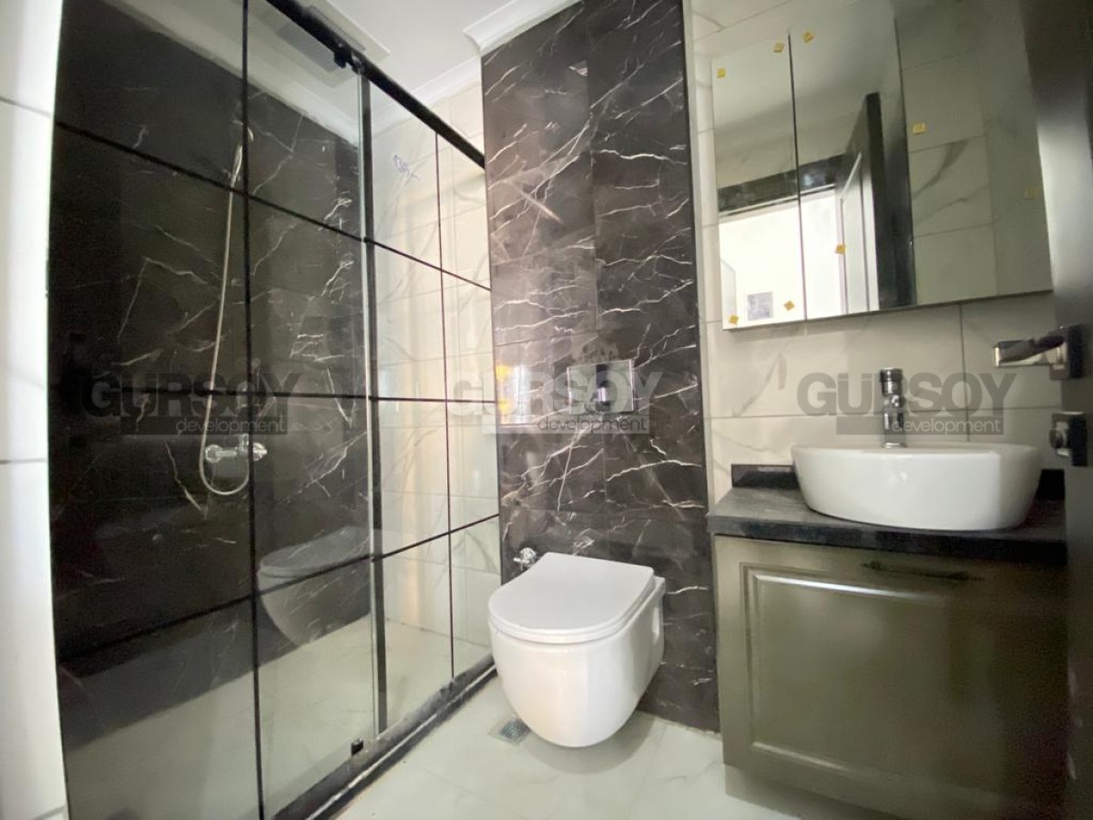 В данном разделе представлена квартира с качественной чистовой отделкой и удобной планировкой 2+1, включающей кухню открытого типа, совмещенную с гостиной, 2 спальни, санузел и открытый балкон, с видом на новые кварталы города. Квартира - светлая и просторная, общей площадью 90 м2, с подвесными потолками с точечным освещением, керамическим напольным покрытием, стильным кухонным гарнитуром, современными душевыми кабинами и высококлассной сантехникой. Квартира находится на 1-м этаже в новом жилом комплексе, построенном в начале 2023 года.