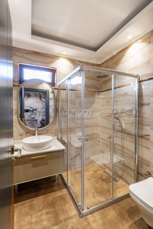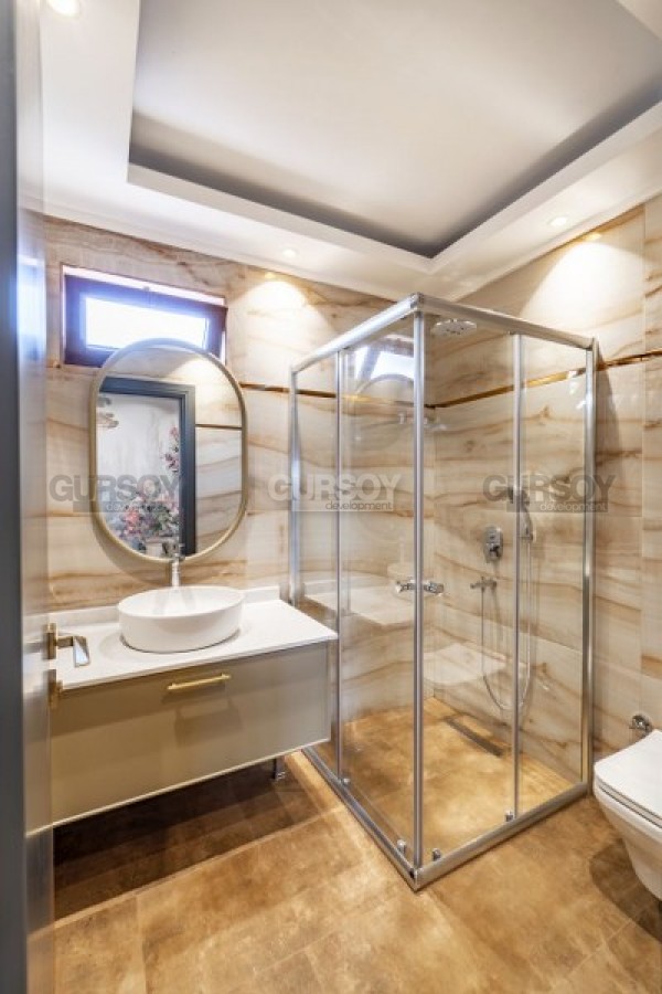 Вилла расположена в километре от центра живописного района Аланьи - Инжекум, и в полутора километрах от роскошного песчаного пляжа, с мелким золотистым песком, пологим входом в воду и кристально чистым спокойным морем.