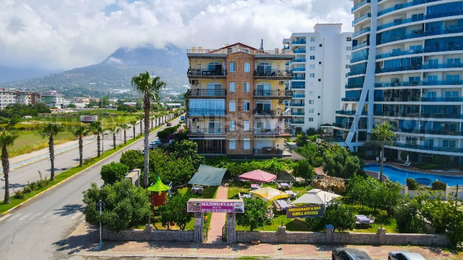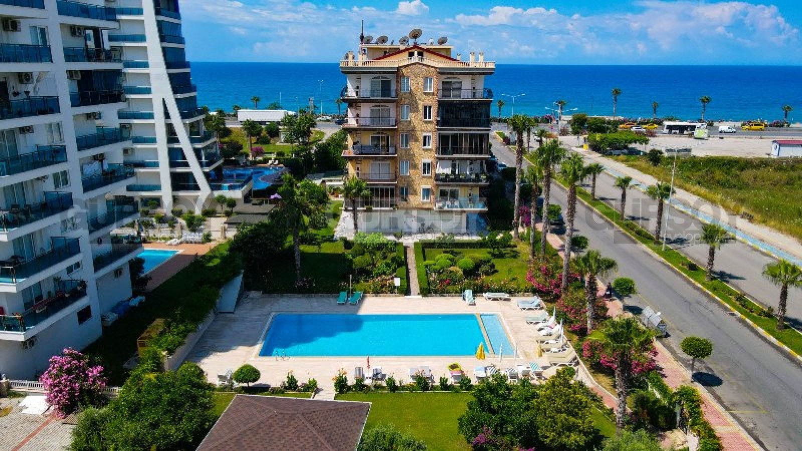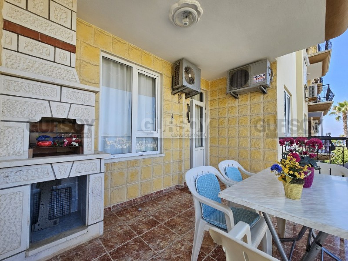 Если вы мечтаете о летней резиденции на побережье, или о квартире для постоянного проживания, в комфортабельном курортном районе, стоит обратить внимание на престижный район Аланьи - Кестель. В самом его центре, на первой линии от моря выставлена на продажу уютная, светлая квартира. Расположена она на 2-м этаже в жилом комплексе, построенном в 2005 году, и имеет общую площадь 90 м2, на которых расположились: кухня, салон, 2 спальни, оснащенный душевой кабиной санузел и большой открытый балкон, с встроенным мангалом. В гостиной, отделённой от кухни широкой аркой, установлены: мягкий уголок, приятного лилового оттенка, кресло, сервант, журнальный столик и обеденный стол. Просторная кухня оснащена современной бытовой техникой. Спальни укомплектованы удобными кроватями, тумбами и вместительным гардеробными шкафами, а на балконе, у каменного мангала, установлена практичная уличная мебель.