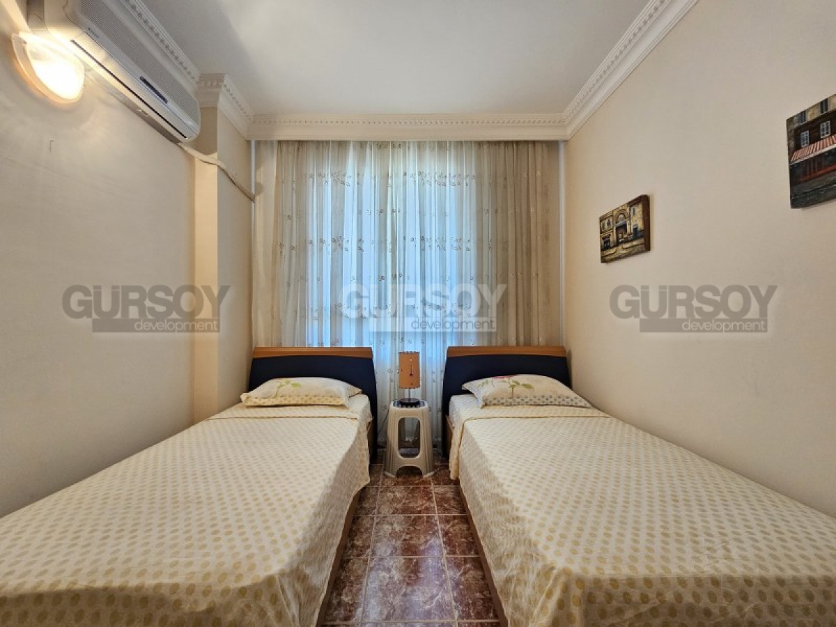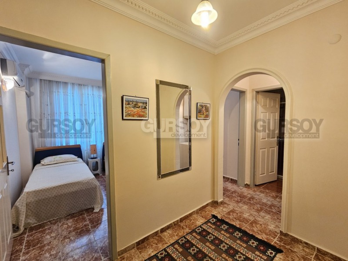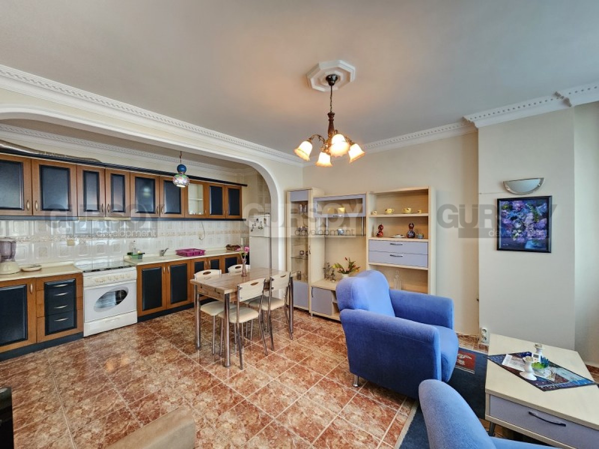 Если вы мечтаете о летней резиденции на побережье, или о квартире для постоянного проживания, в комфортабельном курортном районе, стоит обратить внимание на престижный район Аланьи - Кестель. В самом его центре, на первой линии от моря выставлена на продажу уютная, светлая квартира. Расположена она на 2-м этаже в жилом комплексе, построенном в 2005 году, и имеет общую площадь 90 м2, на которых расположились: кухня, салон, 2 спальни, оснащенный душевой кабиной санузел и большой открытый балкон, с встроенным мангалом. В гостиной, отделённой от кухни широкой аркой, установлены: мягкий уголок, приятного лилового оттенка, кресло, сервант, журнальный столик и обеденный стол. Просторная кухня оснащена современной бытовой техникой. Спальни укомплектованы удобными кроватями, тумбами и вместительным гардеробными шкафами, а на балконе, у каменного мангала, установлена практичная уличная мебель.