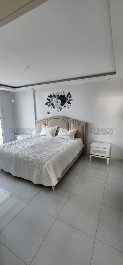 Представленная в данном разделе квартира - идеальный вариант для большой семьи. Просторная, общей площадью 320 м2, она расположена на 10-м этаже с мансардой, и имеет в планировке отдельную кухню, 2 гостиные, 6 спален, 3 санузла, оснащенных душевыми кабинами и ванной, и 5 открытых балконов, с панорамным видом на море и гору Кале. Светлый дуплекс, с преобладанием белого цвета в интерьере, частично укомплектован мебелью и бытовой техникой - мягким угловым диваном, круглым обеденным столом, комфортабельными кроватями, тумбами, трюмо и гардеробными шкафами. Более подробно об оснащении квартиры вы можете узнать у наших менеджеров отдела продаж, позвонив по указанному на сайте телефону.