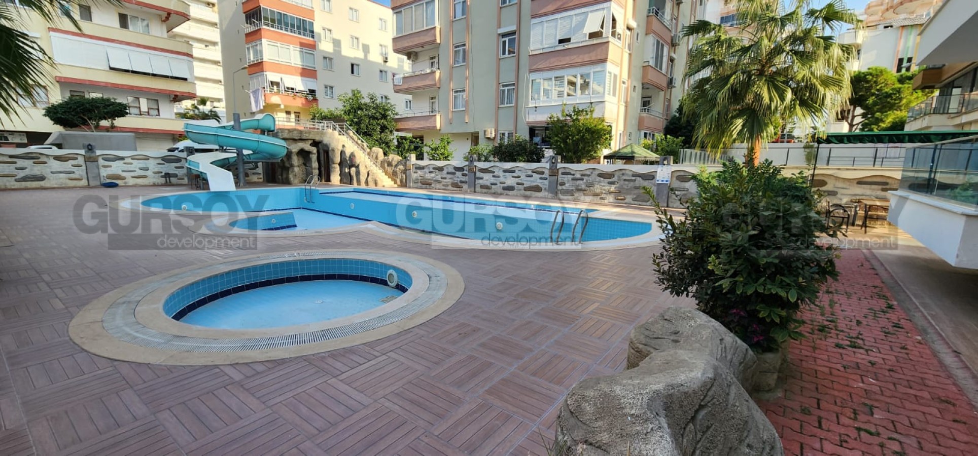 Жилой комплекс, в котором находится квартира, был построен в 2016 году, и имеет на территории открытый бассейн, тренажерный зал, сауну, хамам и парковку. Расположен он в нескольких минутах ходьбы от центра района Махмутлар, где сосредоточены супермаркеты, магазины одежды, пекарни, аптеки, кафе, рестораны, салоны красоты, отделения банков, и прочие объекты социальной инфраструктуры. А от длинного песчано-галечного пляжа, с кристально чистой водой, и благоустроенной набережной, квартиру отделяет всего 200 метров.