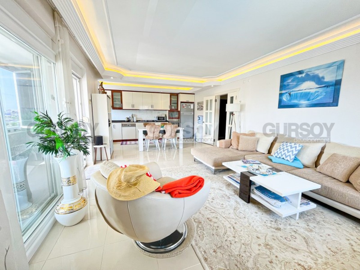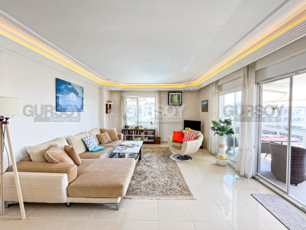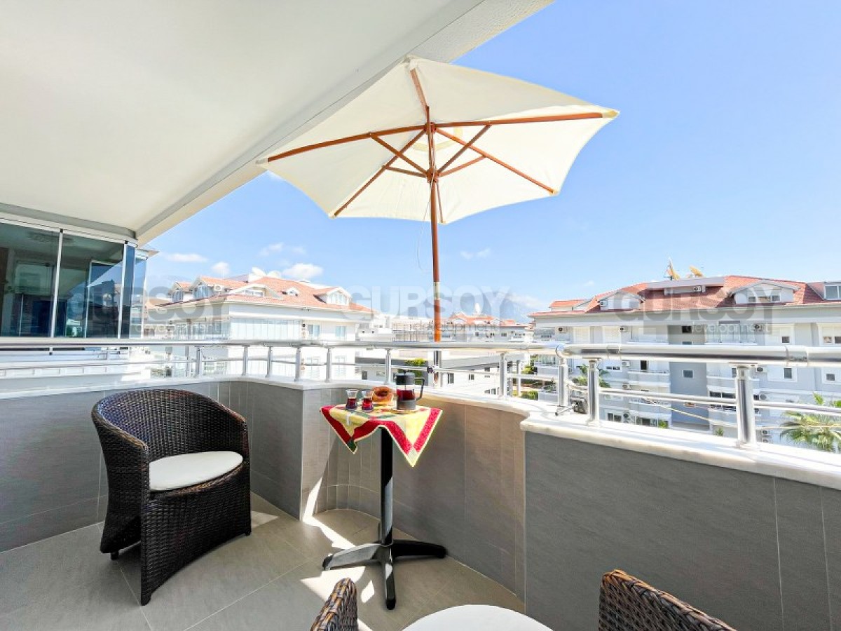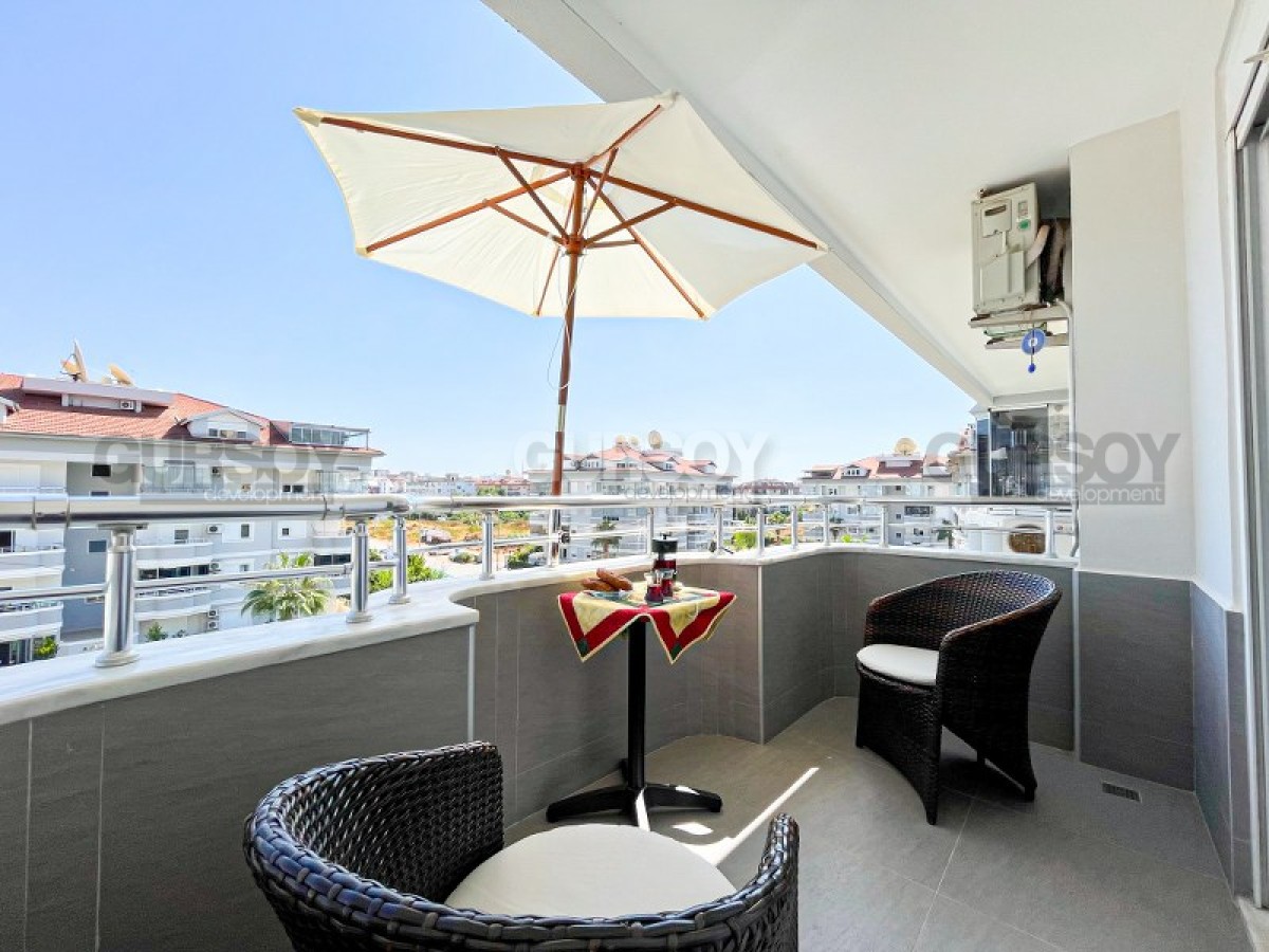 Жилой комплекс, в котором находится квартира, имеет на территории открытый бассейн с водными горками и ухоженный сад. Дом расположен в 750 метрах от центра района Оба, в пешей доступности от всех необходимых объектов городской инфраструктуры, и в 900 метрах от моря.