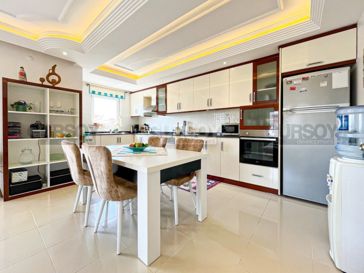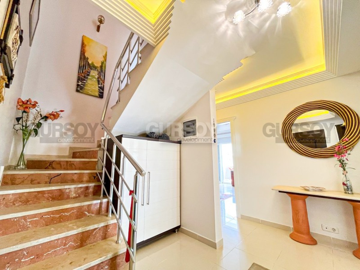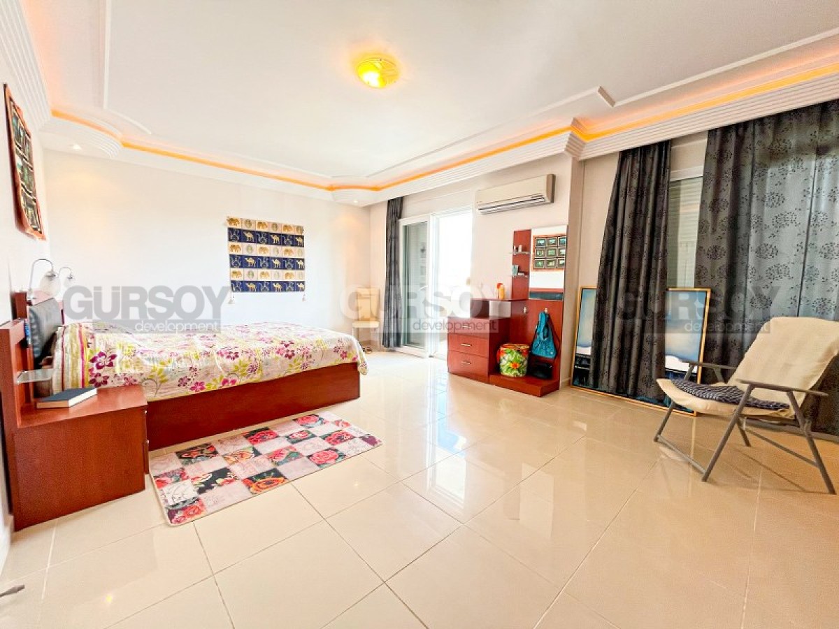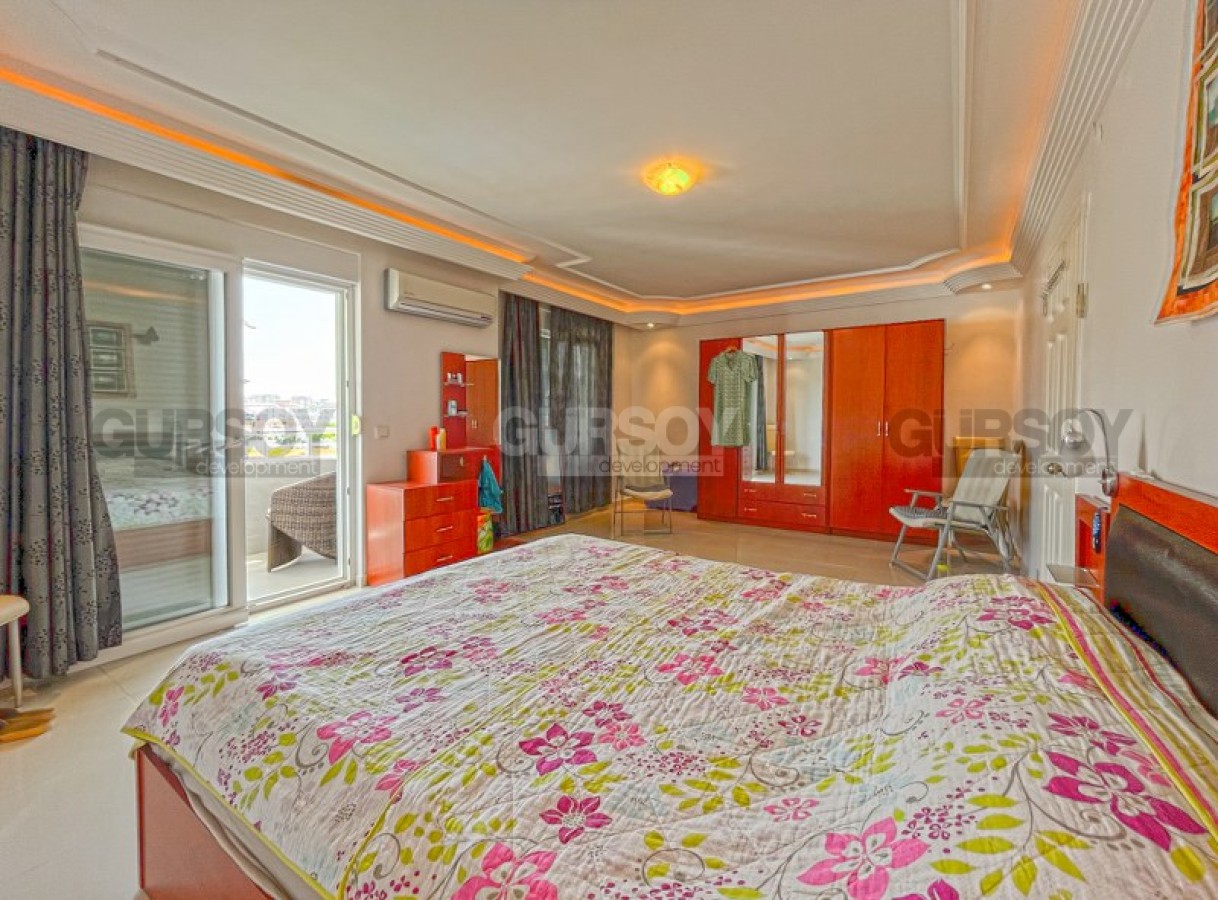В современном районе Аланьи Нижняя Оба, в симпатичном жилом комплексе, построенном в 2013 году, выставлена на продажу просторная двухуровневая квартира, которая отлично подходит для проживания большой семьи. Расположена она на 4-м этаже с мансардой, и имеет общую площадь 225 м2. В планировке - американская кухня, совмещенная с салоном, 3 спальни, 2 санузла, с душевыми кабинами и ванной, 2 балкона и панорамная терраса с видом на город. Квартира - светлая и атмосферная, с мягким освещением, стильными картинами и предметами декора, комфортабельной мебелью и современной бытовой техникой. Гостиная укомплектована массивным угловым диваном, креслом, тумбой, журнальным столиком и обеденным столом. Просторная кухня оснащена холодильником, посудомоечной машиной и духовым шкафом. Спальни настолько просторны, что кроме кроватей, гардеробных шкафов, комодов и гарнитуров, тут разместились дополнительные функциональные зоны. А на балконах и террасе организованы рекреационные пространства, с шезлонгами для загара и садовой мебелью.