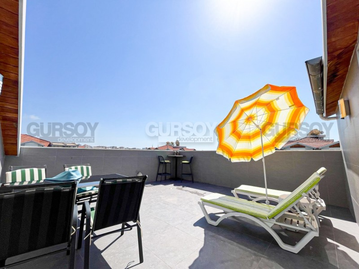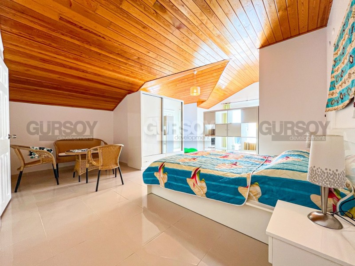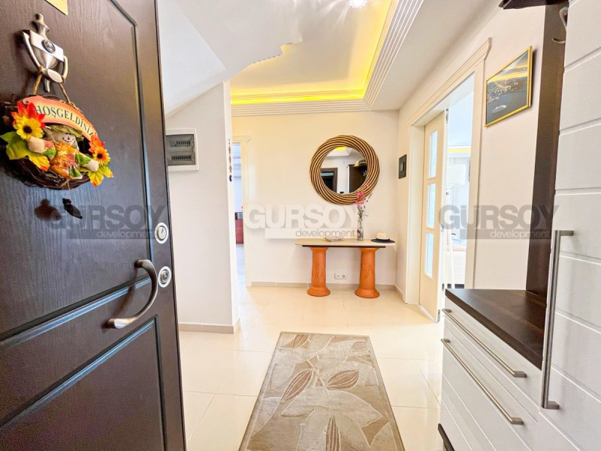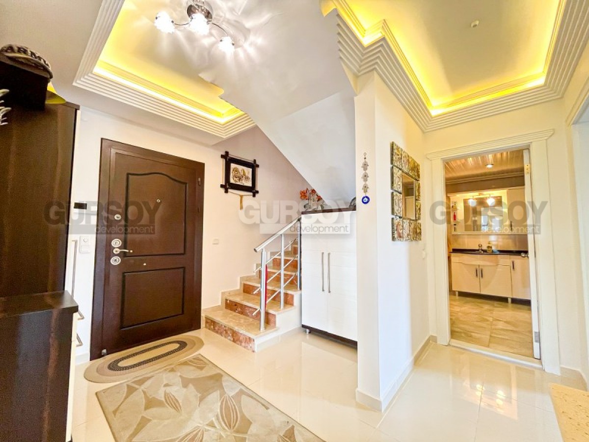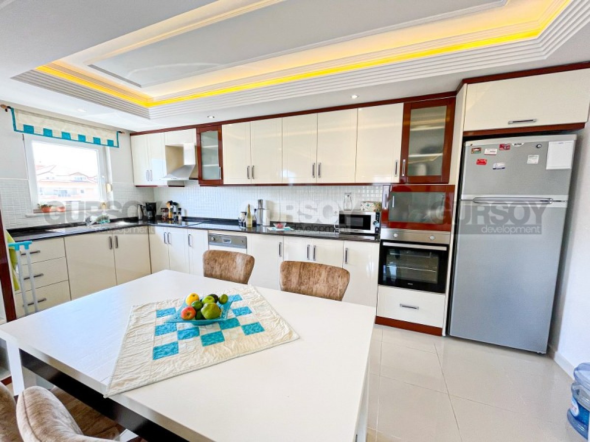 В современном районе Аланьи Нижняя Оба, в симпатичном жилом комплексе, построенном в 2013 году, выставлена на продажу просторная двухуровневая квартира, которая отлично подходит для проживания большой семьи. Расположена она на 4-м этаже с мансардой, и имеет общую площадь 225 м2. В планировке - американская кухня, совмещенная с салоном, 3 спальни, 2 санузла, с душевыми кабинами и ванной, 2 балкона и панорамная терраса с видом на город. Квартира - светлая и атмосферная, с мягким освещением, стильными картинами и предметами декора, комфортабельной мебелью и современной бытовой техникой. Гостиная укомплектована массивным угловым диваном, креслом, тумбой, журнальным столиком и обеденным столом. Просторная кухня оснащена холодильником, посудомоечной машиной и духовым шкафом. Спальни настолько просторны, что кроме кроватей, гардеробных шкафов, комодов и гарнитуров, тут разместились дополнительные функциональные зоны. А на балконах и террасе организованы рекреационные пространства, с шезлонгами для загара и садовой мебелью.