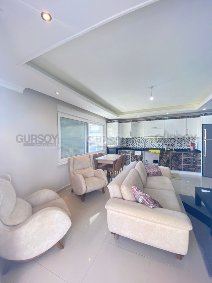 Искали отличную квартиру для отдыха и комфортного проживания? Представляем вам крупнометражную квартиру 1+1, в которой пространство щедро распахнуто перед вами, предлагая 95 кв.м. Квартира располагается на втором этаже. Планировка включает наличие спальной комнаты, гостиной, совмещенной с кухней, ванной комнаты с душевой кабиной, прихожей и огромного балкона с панорамным ограждением.