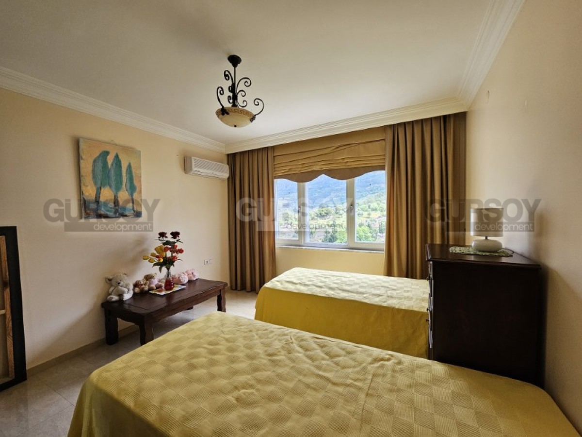 Приветствуем вас в прекрасном уголке Аланьи, в районе Махмутлар. Представляем вашему вниманию прекрасную четырехкомнатную квартиру, которая станет идеальным выбором для вашей семьи. Эта просторная квартира 3+1 олицетворяет собой элегантность и комфорт. Свежий воздух и лучи солнца проникают в уютную гостиную, приглашая вас отдохнуть после долгого дня. Великолепная кухня современного дизайна оснащена всей необходимой бытовой техникой и мебелью, чтобы вы могли с удовольствием готовить и проводить время с семьей и друзьями. Три уютные спальни созданы для полного расслабления и покоя. Два просторных балкона приглашают наслаждаться живописными видами на окружающую зелень и величественные горы.
