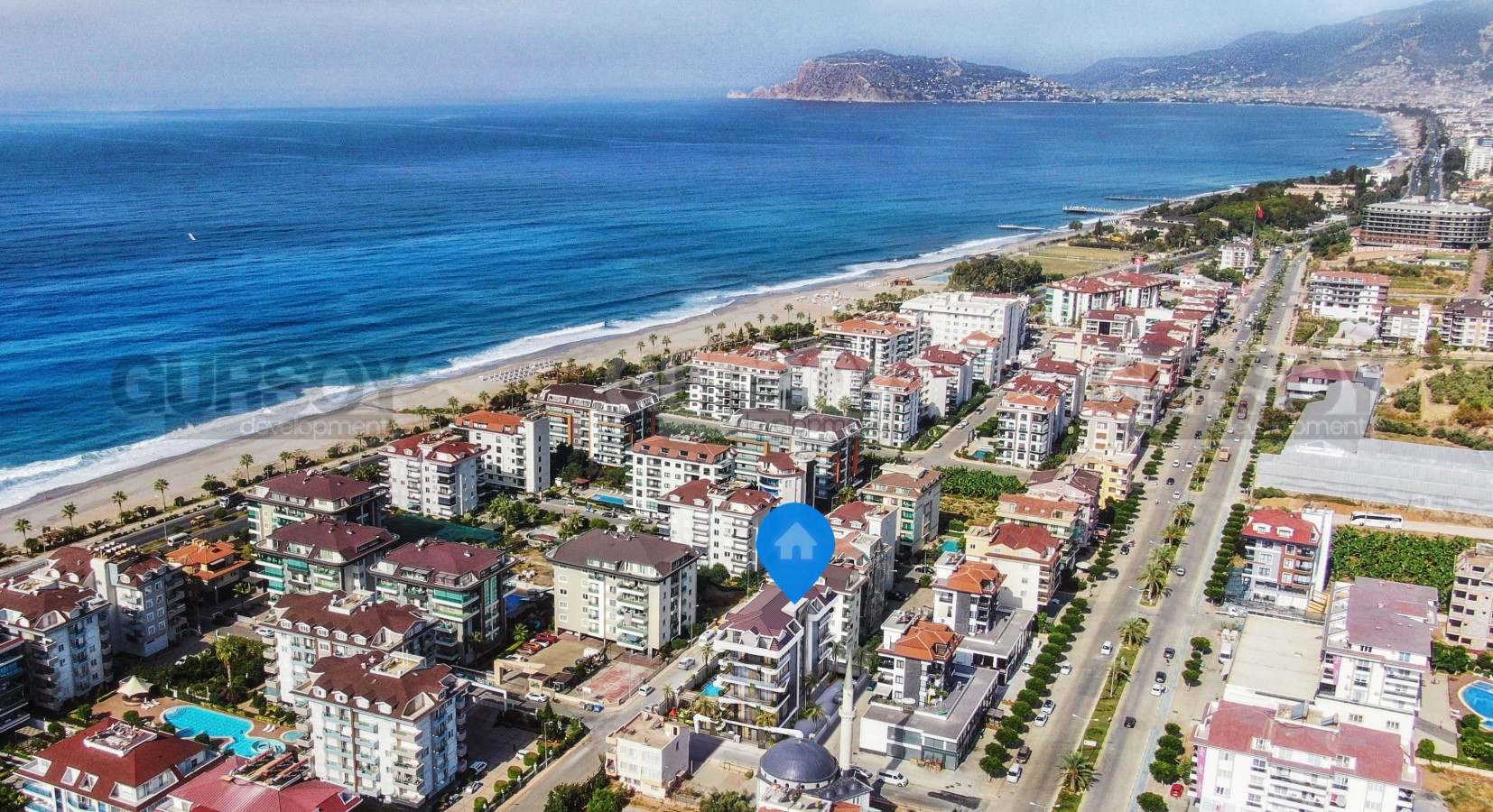 Расположение — район Кестель, один из самых благоустроенных и зеленых районов Аланьи. Всего 200 метров до Средиземного моря, в пешей доступности — магазины, кафе, остановки транспорта. Место отлично подходит как для постоянного проживания, так и для отдыха или аренды.