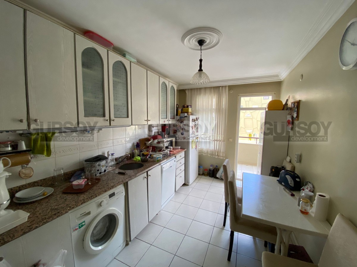 На продажу представлена четырехкомнатная квартира в комплексе городского типа, расположенного в районе Кызларпынары, всего в 500 метрах от пляжа Клеопатры.