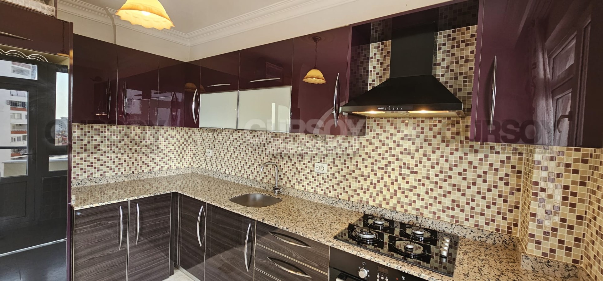 К основным преимуществам квартиры, представленной в данном разделе, относятся: большая площадь - 120 м2, удобная планировка, с отдельной кухней, салоном, двумя спальнями, двумя санузлами и двумя балконами; укомплектованность мебелью и бытовой техникой, локация в пешей доступности от моря, и очень привлекательная цена. Квартира - светлая, с простым лаконичным дизайном и теплыми оттенками в интерьере. В гостиной установлены: большой угловой диван, ярко-красного цвета, журнальный столик и обеденный стол, с мягкими стульями. Практичная кухня оснащена холодильником, духовым шкафом и газовой плитой. Спальни укомплектованы комфортабельными кроватями, гардеробными шкафами, тумбами и комодами, а в санузлах установлены душевая кабина и ванна.