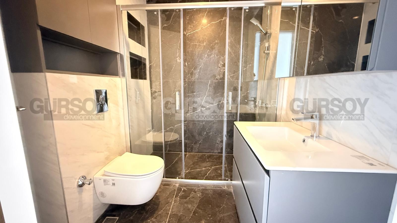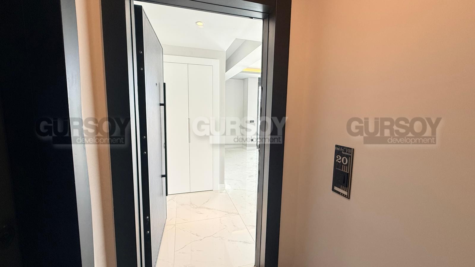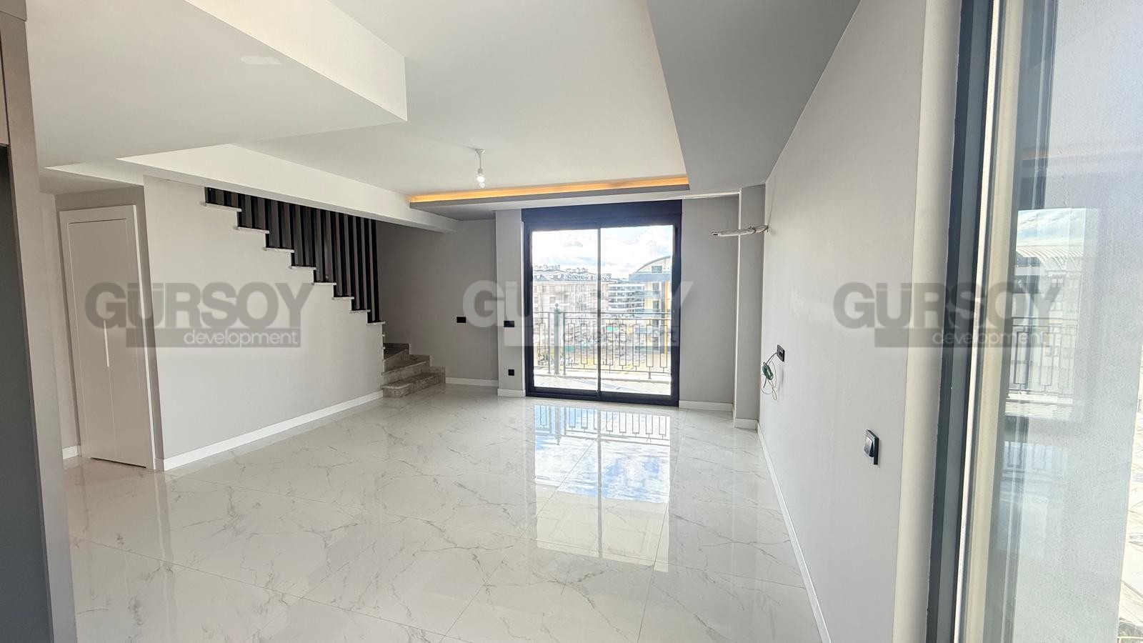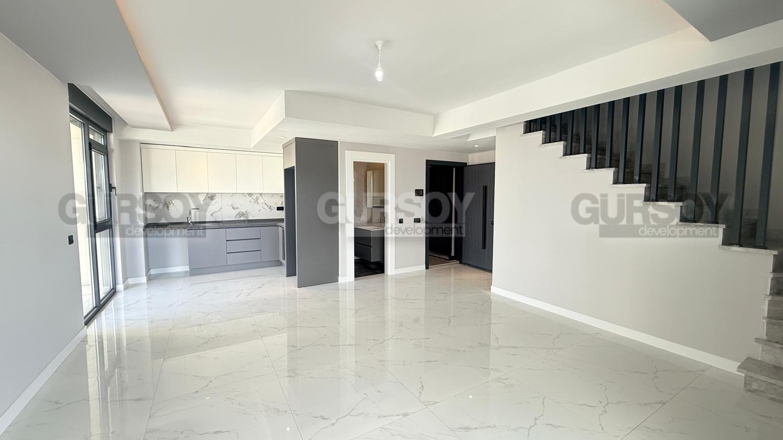В продаже дуплекс-квартира 2+1 площадью 105 м², расположенная на 5–6 этажах нового жилого комплекса в районе Каргыджак. Планировка включает гостиную с кухней, две спальни, 3 ванные комнаты, 2 балкона. Квартира ориентирована на юго-запад, дом сдан в 2025 году, расстояние до моря — 250 метров.