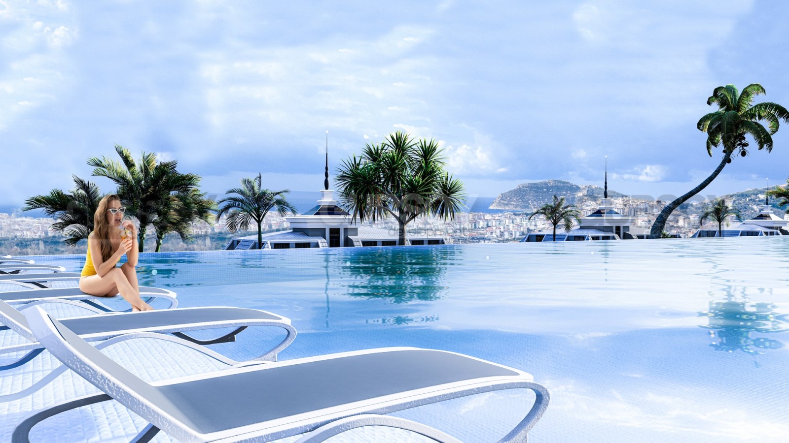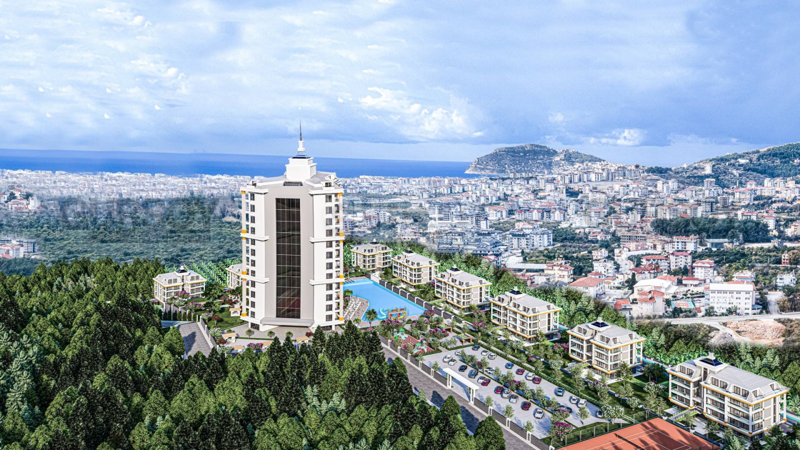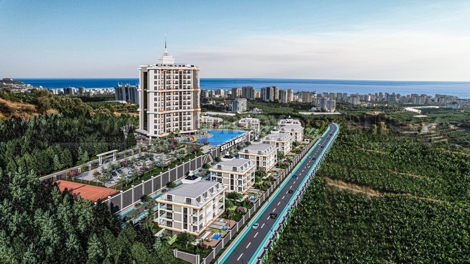 Проект расположен в 2,5 км от моря, но благодаря трансферу до моря этот путь займёт всего 3 минуты, зато с данного месторасположения открывается чудесная панорама на море, горы, всю Аланию и конечно самую главную достопримечательность – крепость Алании.