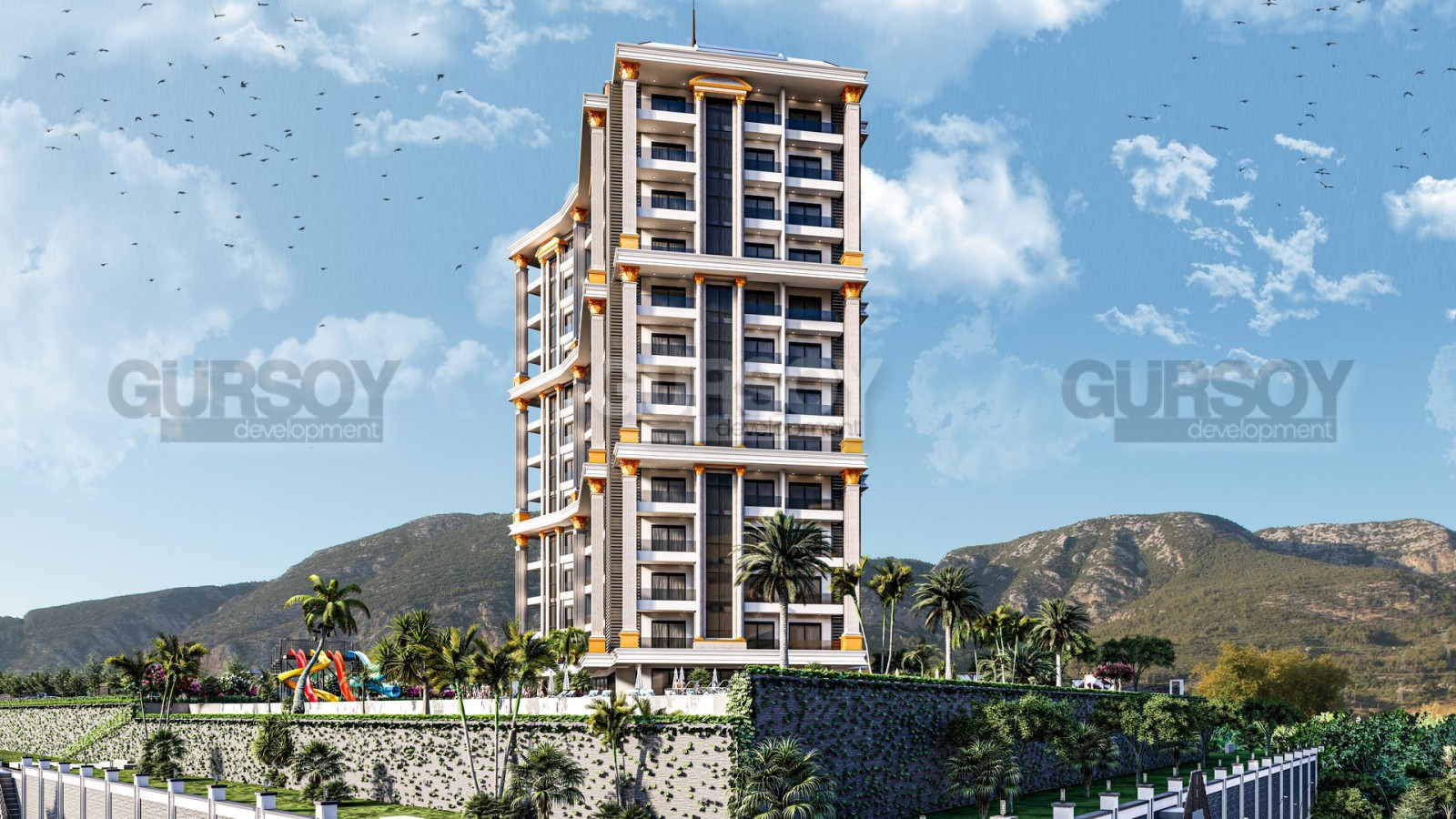 Компания Gürsoy Development представляет вашему вниманию дуплекс 2+1 в премиальном строящемся жилом комплексе, который расположен в сердце городской инфраструктуры, в самом развитом Прайоне Алании – Махмутлар.