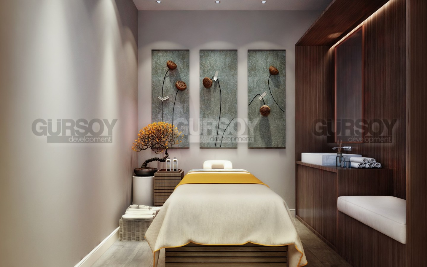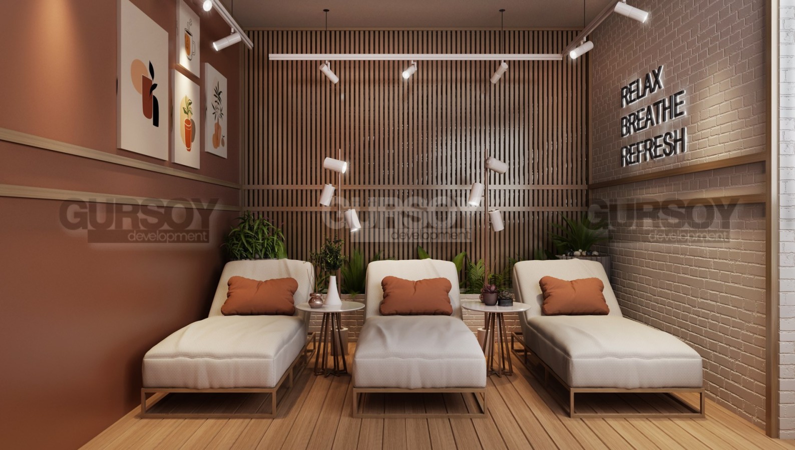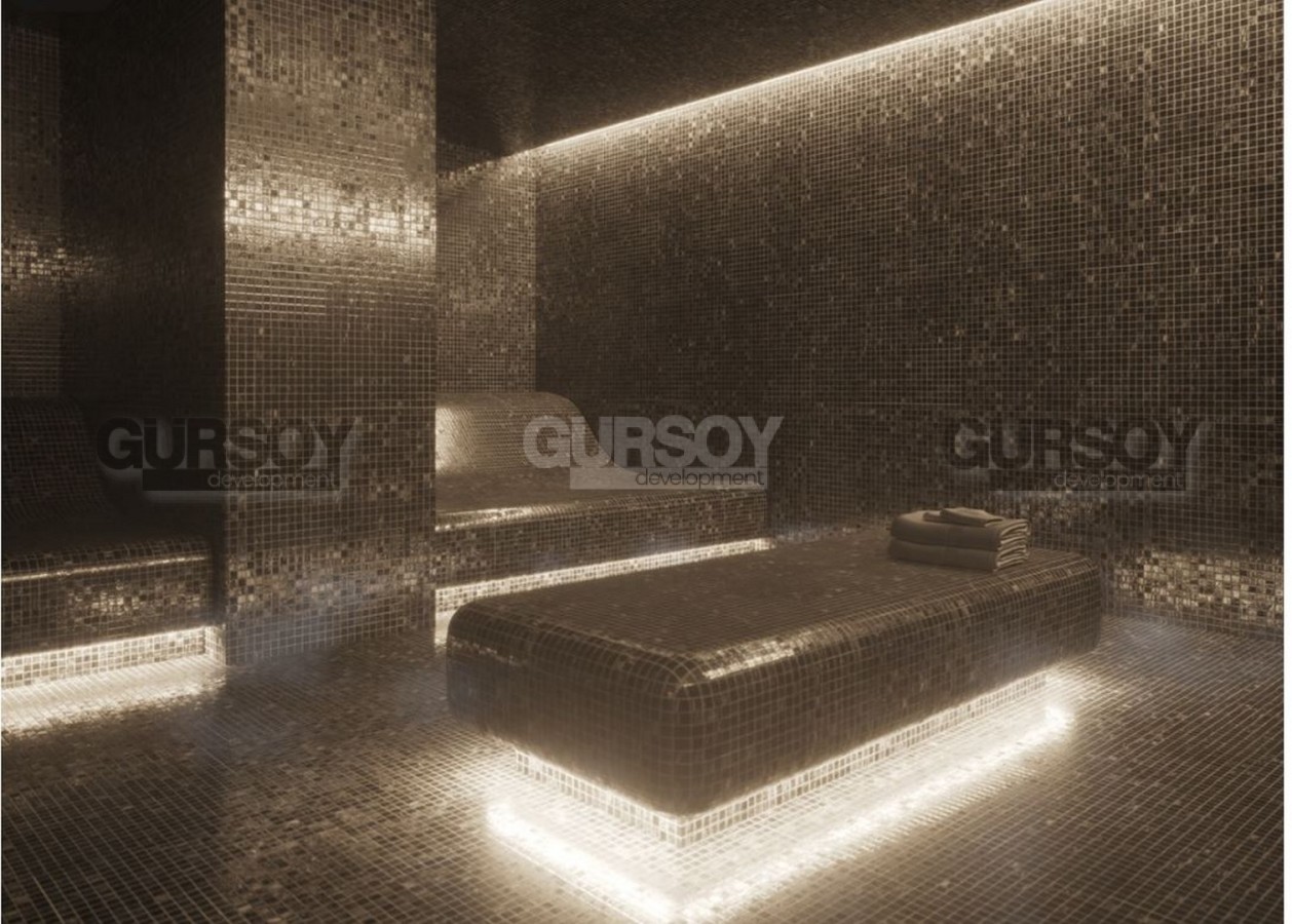 В главном здании комплекса расположены закрытый бассейн с подогревом, игровая детская комната, комната отдыха, СПА зона с римской и финской саунами, турецкий хамам, релакс зона, массажные комнаты. Для автомобилей на территории комплекса предусмотрены крытая и открытая парковки, а также Wi-Fi интернет на всей территории комплекса, 24/7 видеонаблюдение и охрана, генератор. Холлы и вестибюли комплекса по своему уровню соответствуют интерьерам высококлассных отелей.