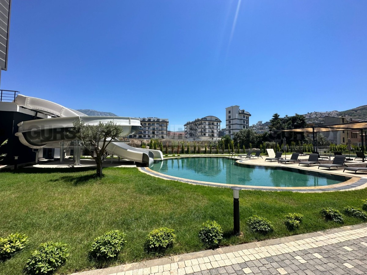 Квартира расположена в современном, полностью оборудованном жилом комплексе. На территории есть открытый бассейн с аквапарком, хаммам, сауна и паровая комната, фитнес-зал, зоны отдыха, камелии и барбекю. Для активного досуга предусмотрены футбольная и баскетбольная площадки, а для детей — игровая комната. Комплекс оснащён генератором, двойными лифтами, кодовыми дверями и системой видеонаблюдения 24/7.