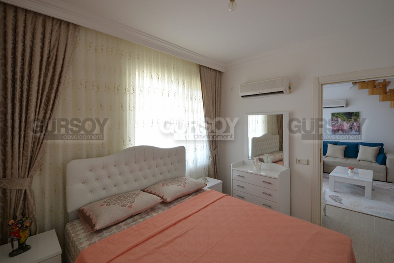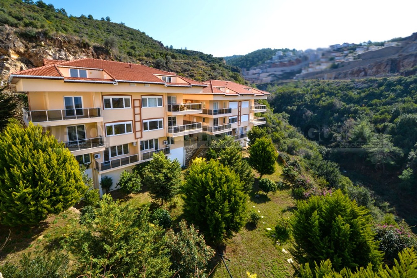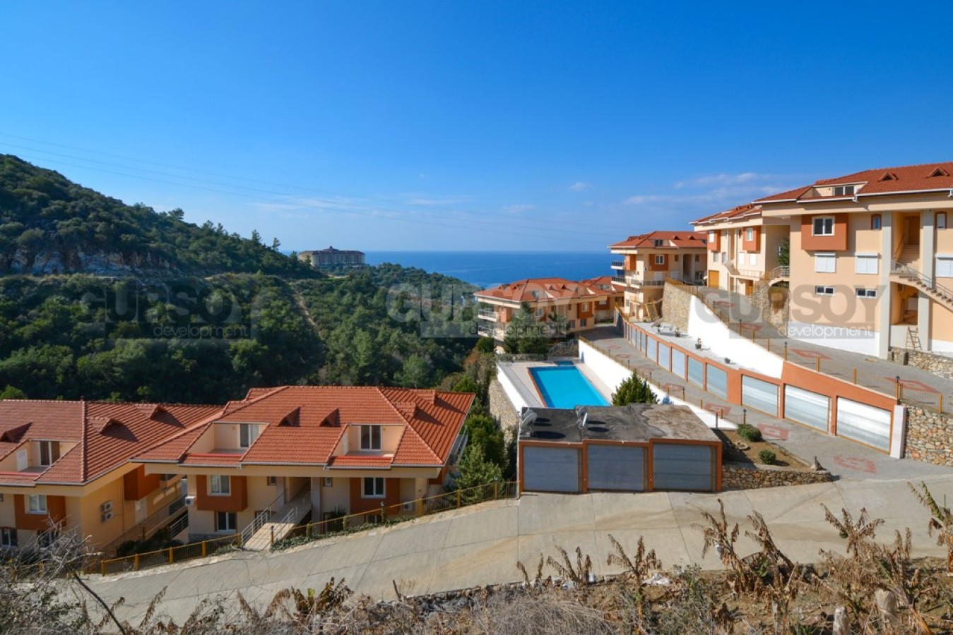 Дуплекс является частью комплекса, расположенного на склоне Таврских гор и находится в доступности нескольких минут от прекрасно обустроенных пляжей и городской инфраструктуры.