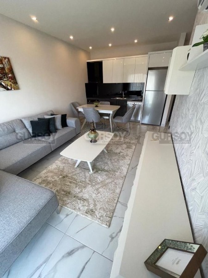 Компания Gürsoy Development представляет вашему вниманию сразу две стильные квартиры 1+1 в современном жилом комплексе в районе Оба. Площадь квартир 45 м2, а планировка 1+1 подразумевает наличие гостиной, совмещённой с кухней, спальни, ванной комнаты и балкона. Квартиры продаются в полной стильной меблировке, с установленной бытовой техникой, кондиционерами и точечным освещением. Ванные комнаты оборудованы душевыми кабинами и современной сантехникой. Квартиры расположены на 3-м этаже 5-этажного жилого комплекса 2022 года постройки.
