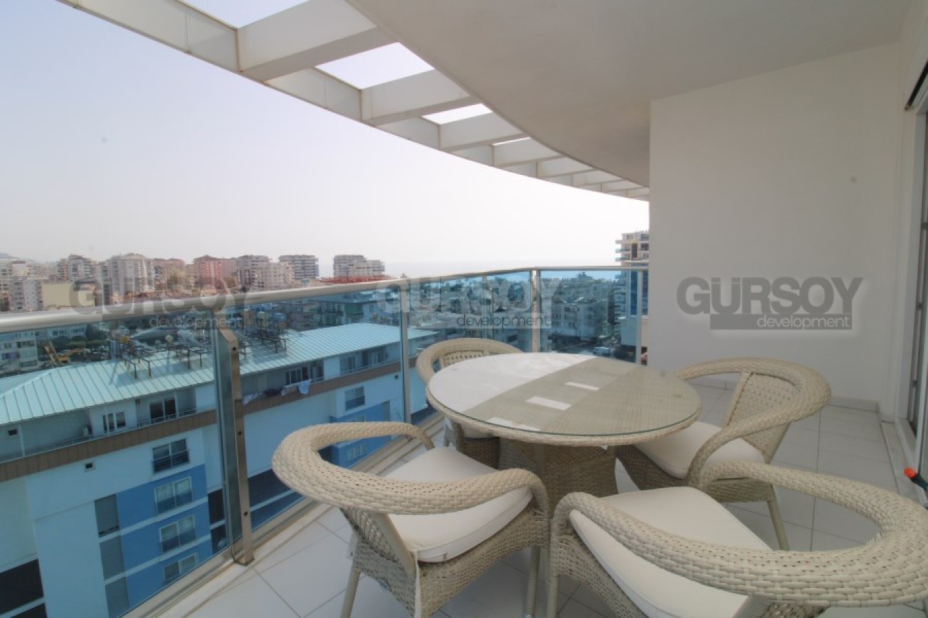 Квартира имеет планировку 1+1, включающую одну спальню, ванную комнату, прихожую, гостиную с кухней и обеденной зоной, а также, большой балкон, который имеет вид на море и горы. Расположение квартиры на 11 этаже из 12, позволяет иметь панорамный вид и ощущение пространства.