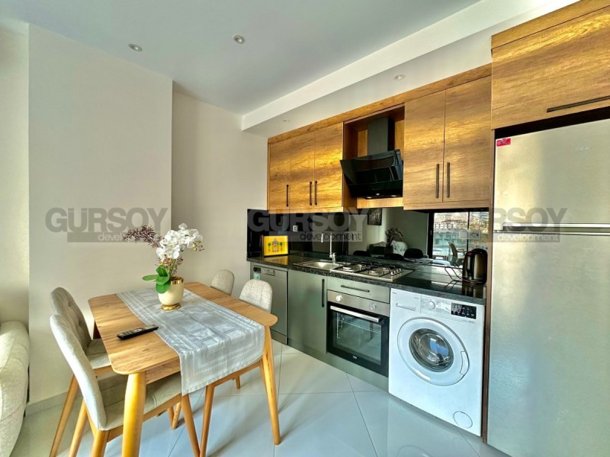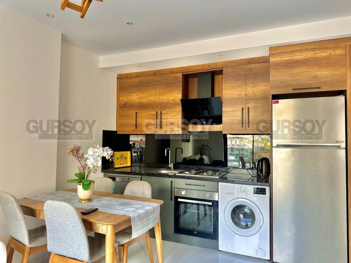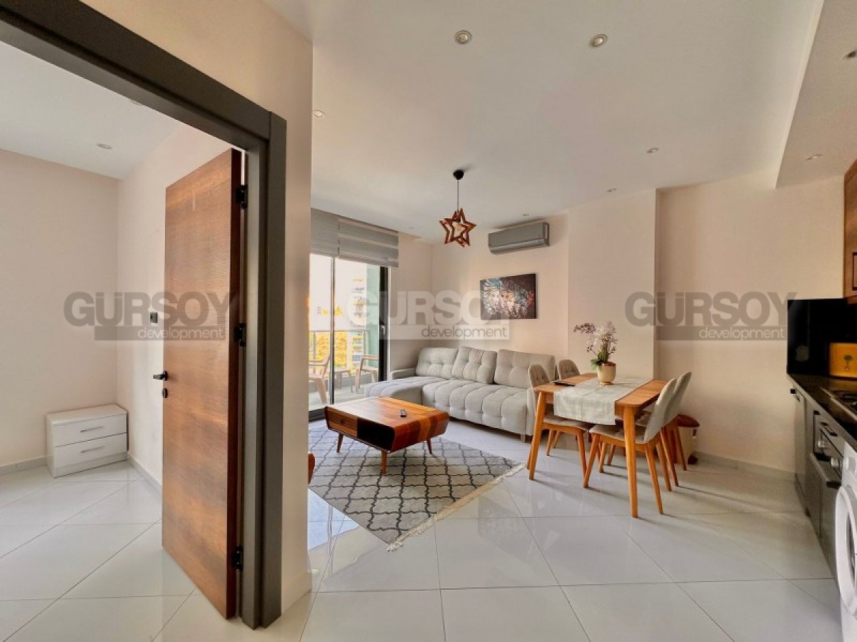 В современном жилом комплексе, в районе Махмутлар всего в 450 метрах от Средиземного моря, расположена стильная квартира с планировкой 1+1, общей площадью 55 кв.м. Эта уютная квартира находится на седьмом этаже двенадцатиэтажного здания и предлагает захватывающий вид на окружающие пейзажи.