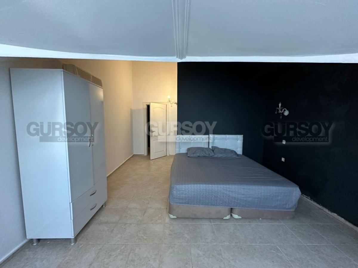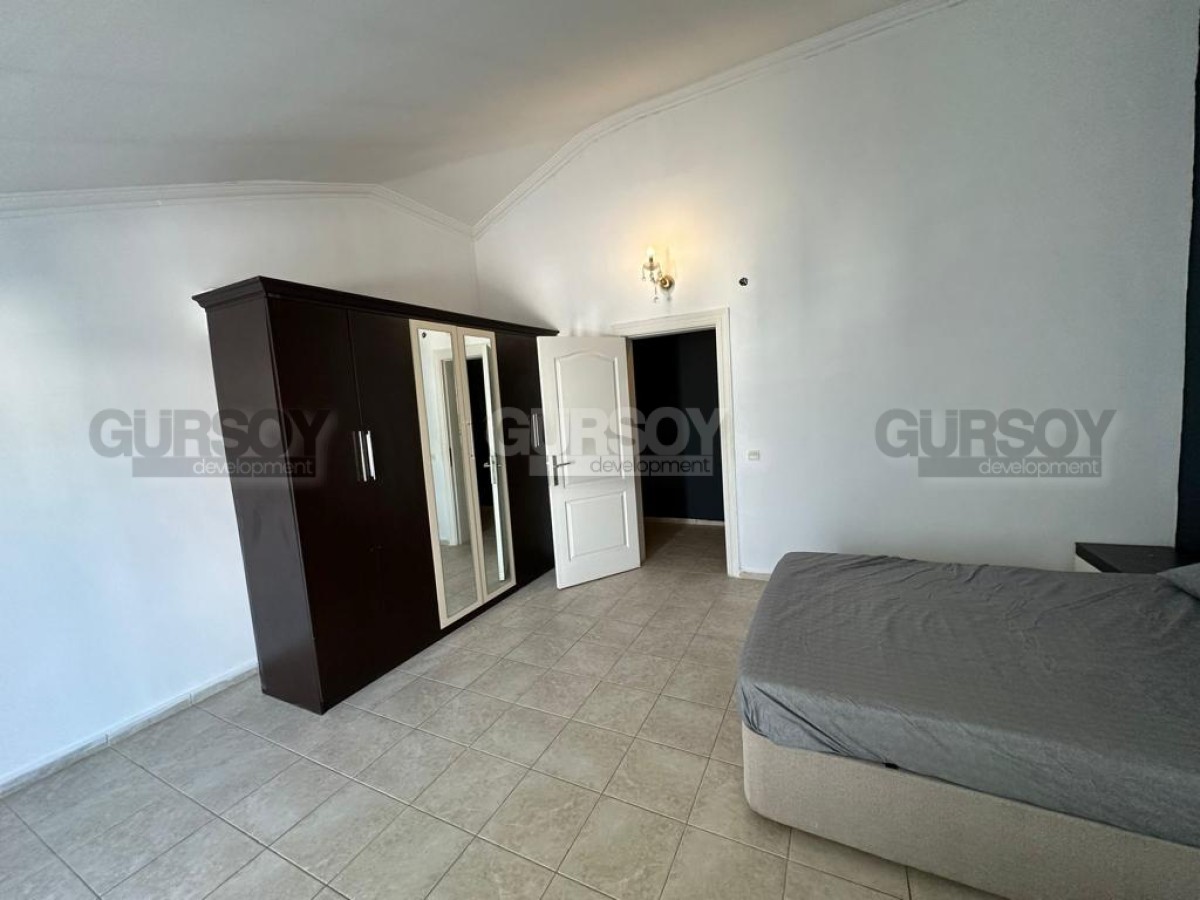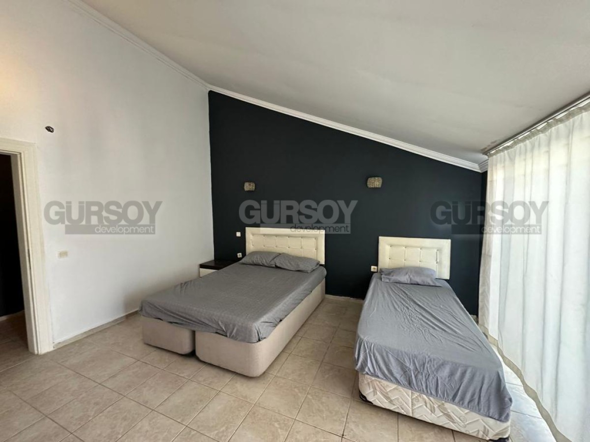 На продажу выставлена большая двухуровневая квартира 3+1, на площади 190 м2, с совмещенной с кухней гостиной тремя спальнями, двумя санузлами с душевой кабиной и ванной, и двумя балконами. Квартира расположена на 4-м этаже с мансардой в резиденции, построенной в 2008 году практически на самом берегу моря, в центре популярного района Аланьи - Оба. На 1-м этаже дуплекса разместились гостиная и спальня, на 2-м - еще 2 спальни. Все комнаты полностью укомплектованы современной мебелью - в гостиной установлены мягкие диваны, кресла, стильный журнальный столик и гарнитур, в спальнях - кровати и вместительные гардеробные шкафы. Кухонный уголок оснащен всей необходимой бытовой техникой, а на открытой террасе, с видом на город и горные вершины, организована небольшая зона отдыха.