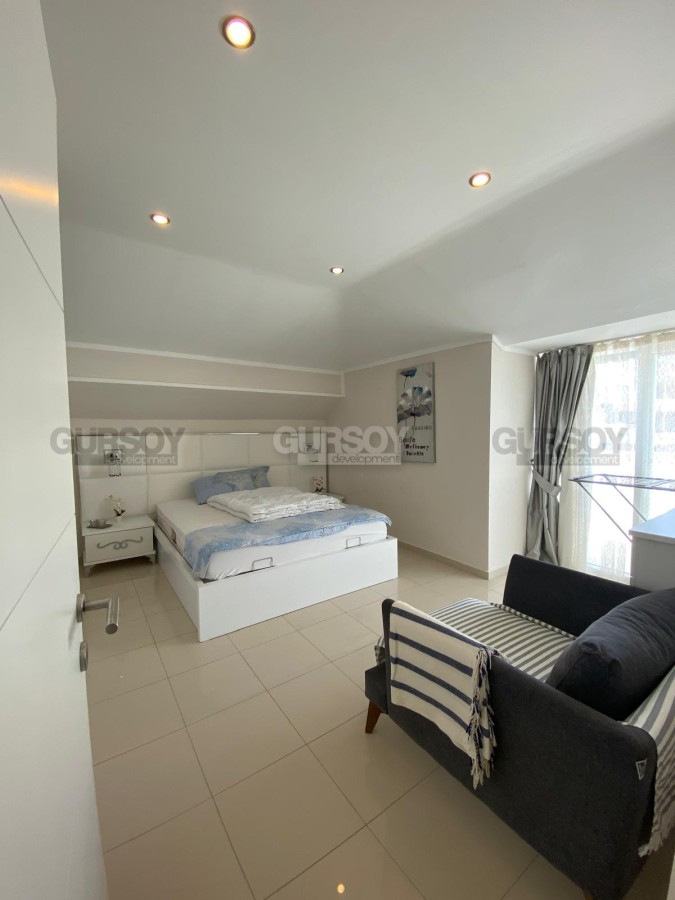 На продажу от собственника выставлены полностью меблированные двухуровневые апартаменты планировкой 3+1 и общей площадью 120 м². Квартира расположена в районе Оба и всего в 400 метрах от моря. Пентхаус находится на двух последних этажах - 4 и 5, окна выходят на восточную сторону.