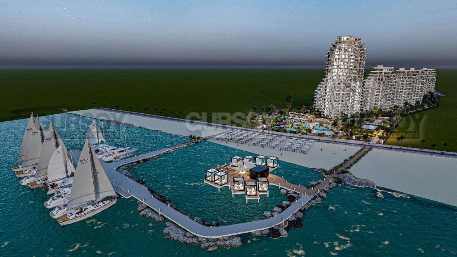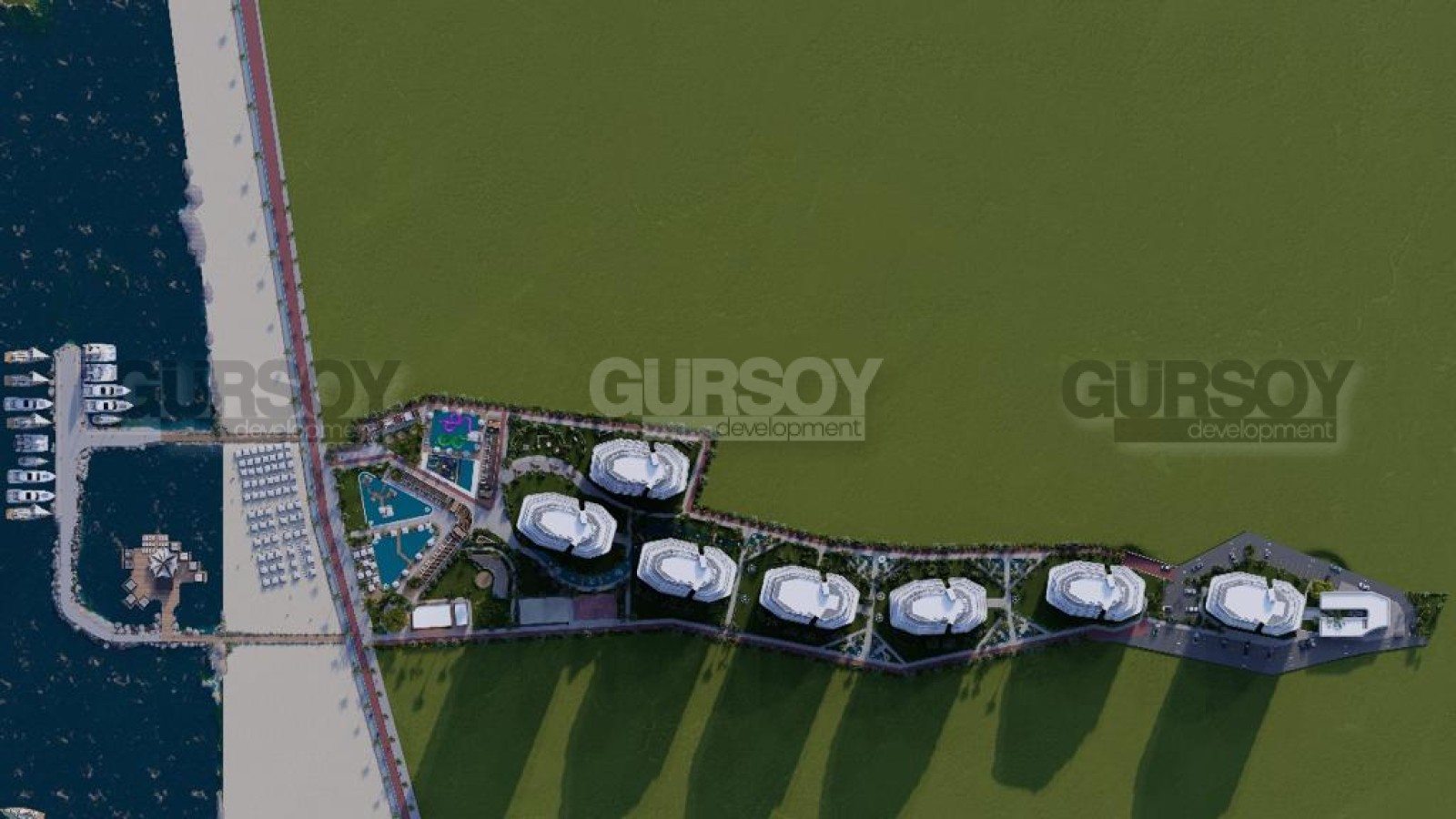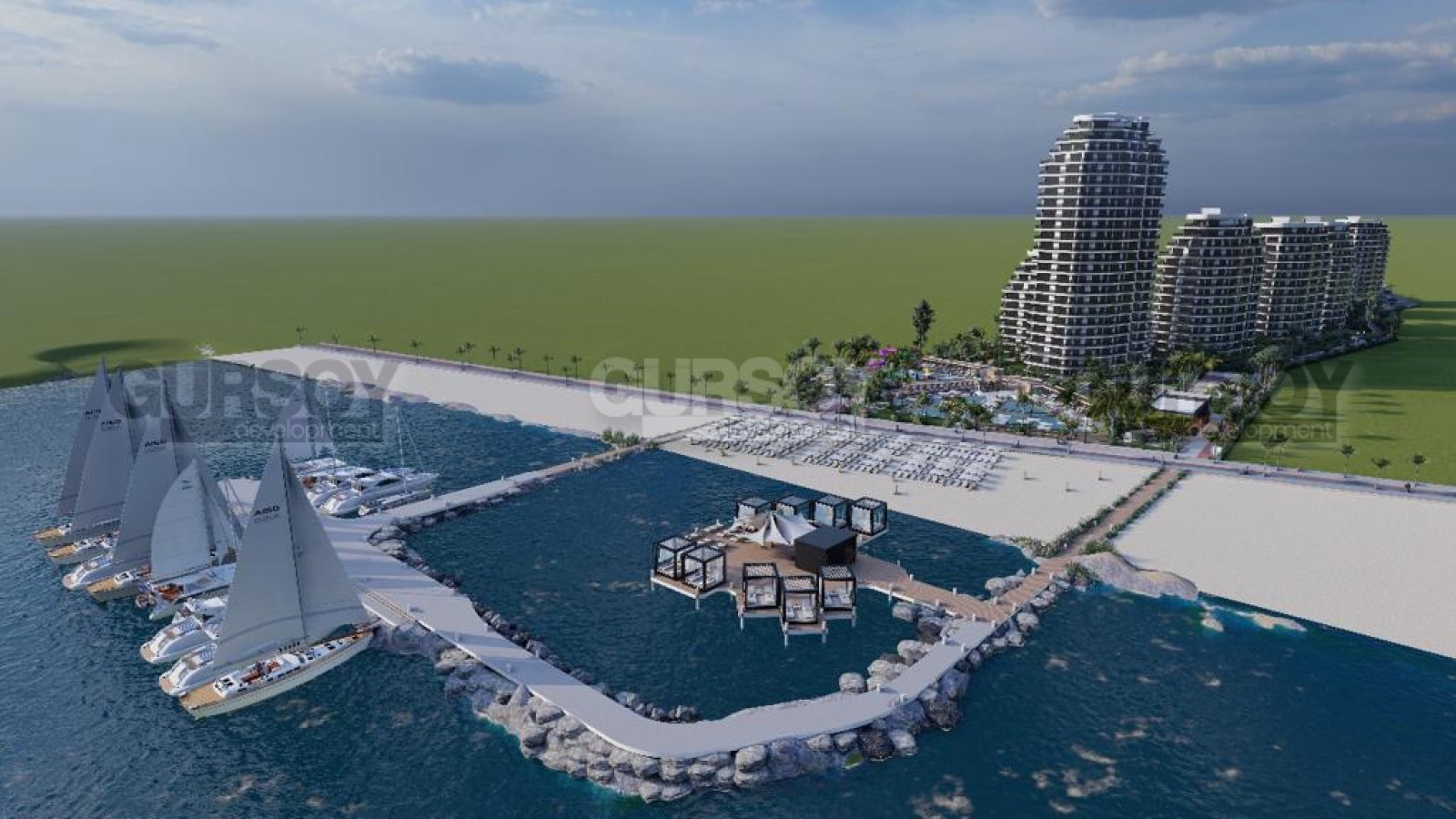 Компания Gursoy Development уникальный инвестиционный проект, предложенный застройщиком на стадии предпродажи и доступный по цене. Строительство современного жилого комплекса с потрясающим видом на море начнется в январе 2024 года на первой береговой линии. Первая фаза завершится в январе 2027 года, а весь комплекс будет сдан в эксплуатацию в январе 2029 года. Первый этап предполагает постройку 4 блоков, которые будут загорожены от строительства остальных трех блоков, но инфраструктурой вы сможете пользоваться при окончании строительства первого этапа. Общая площадь квартир в проекте составляет 1054. Представлены различные планировки: студии, 1+1 2+1 и 3+1 и практически все квартиры будут с видом на море. Общая площадь жилья варьируется от 34 кв.м. до 230 кв.м.