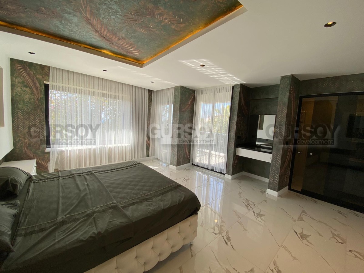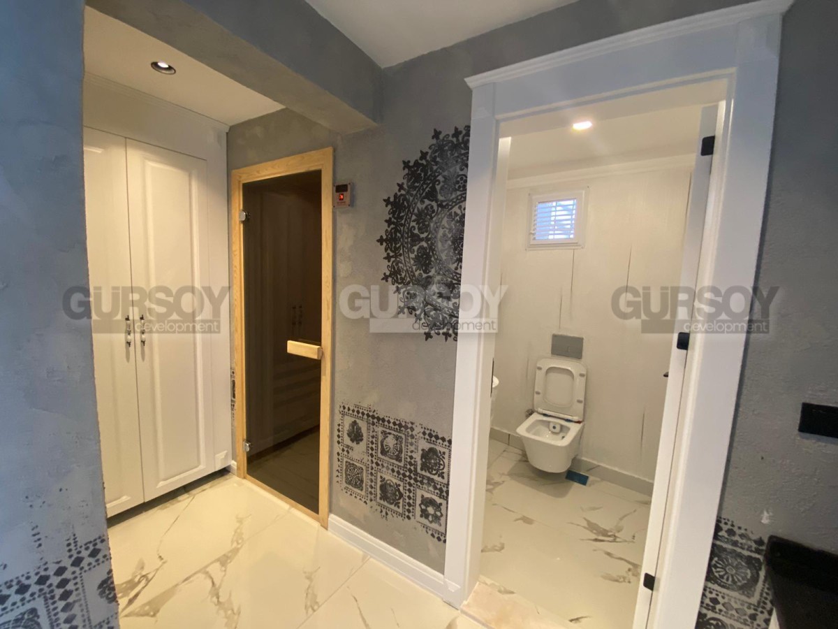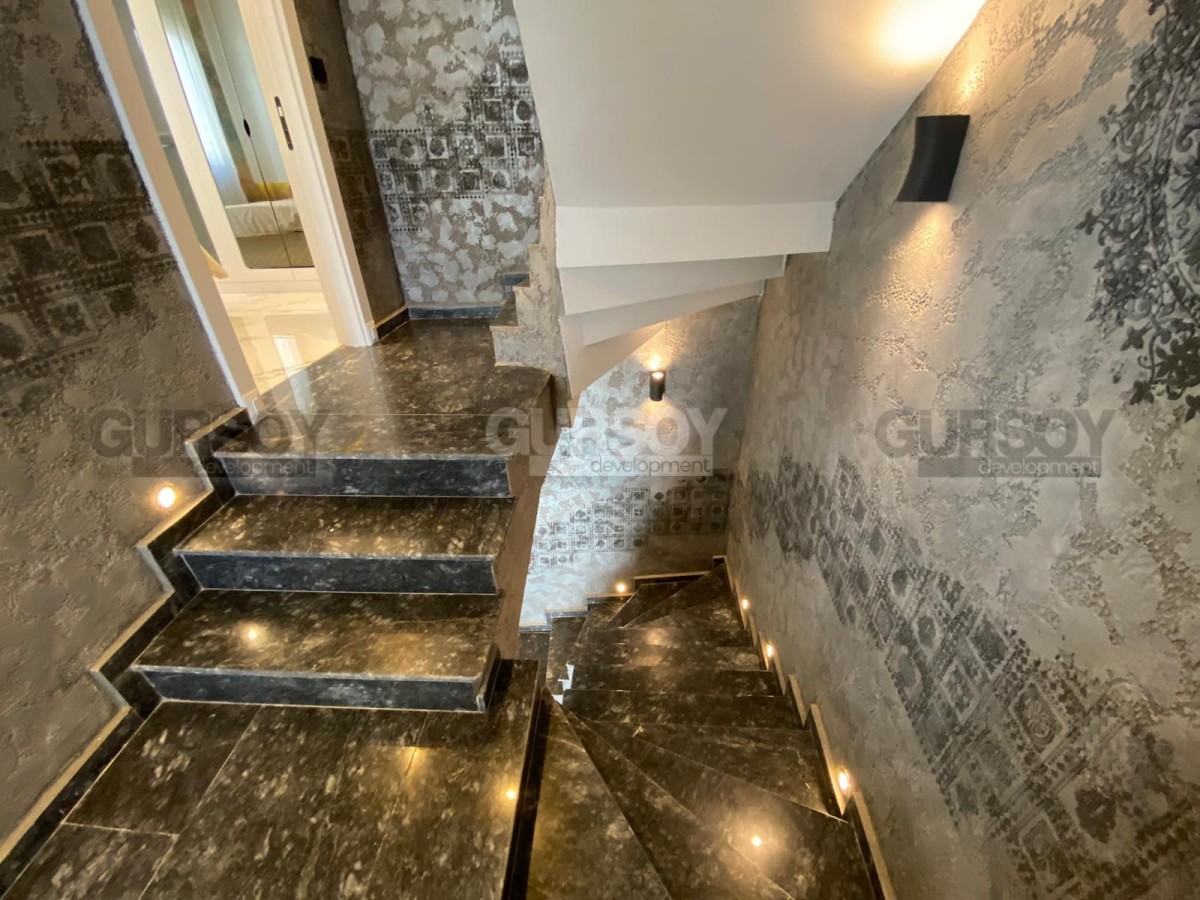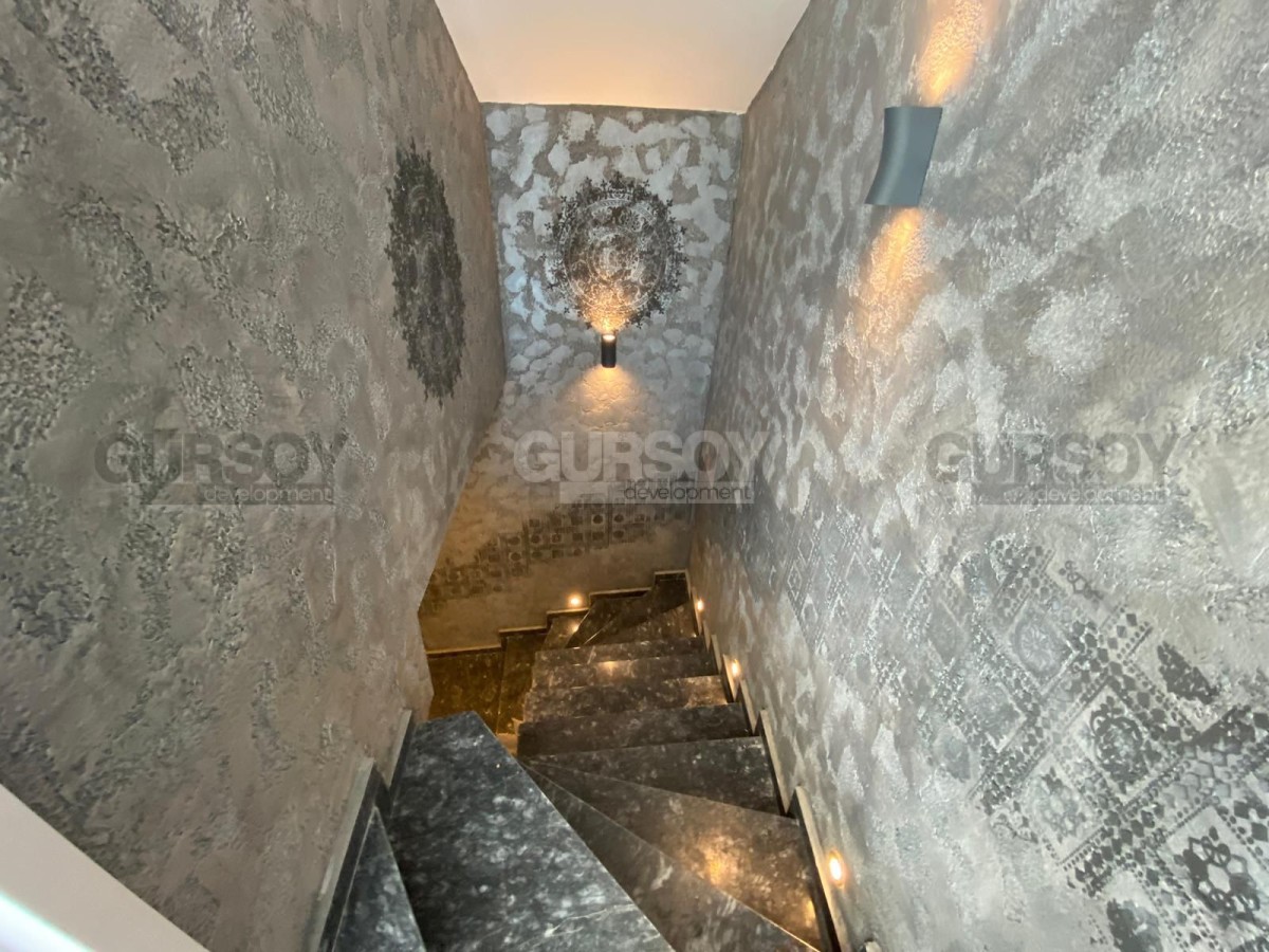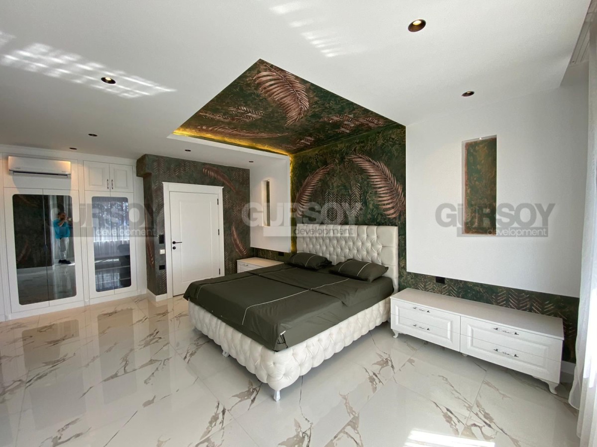 Вилла оснащена современными системами, включая полное отопление полов, дизайнерскую люксовую отделку и продуманное наружное освещение. У вас будет доступ к общему бассейну, а также к собственному бассейну, окруженному уютным садом. В дополнение к этому предусмотрены детская игровая площадка, сауна и хаммам с видом на море, которые добавят вашему отдыху максимум комфорта. Для автомобилей предусмотрен открытый гараж.