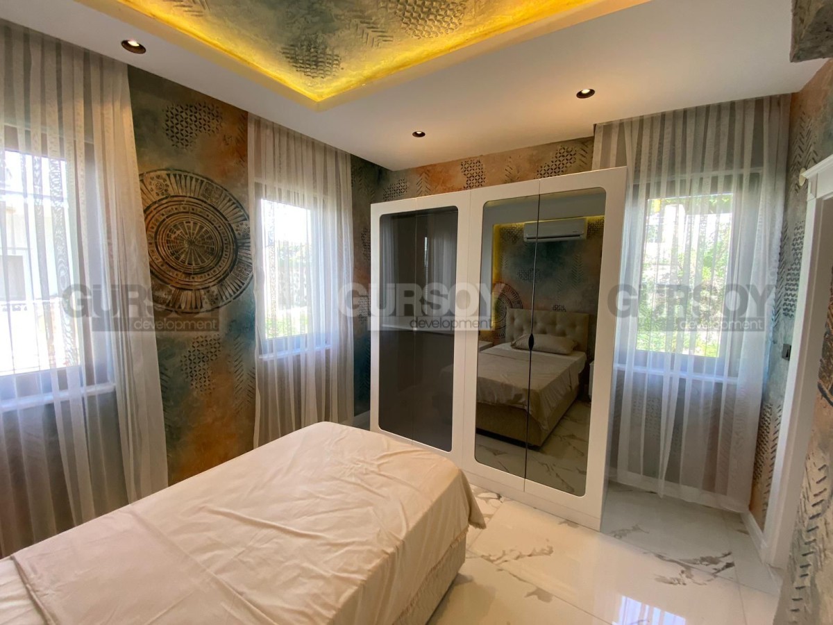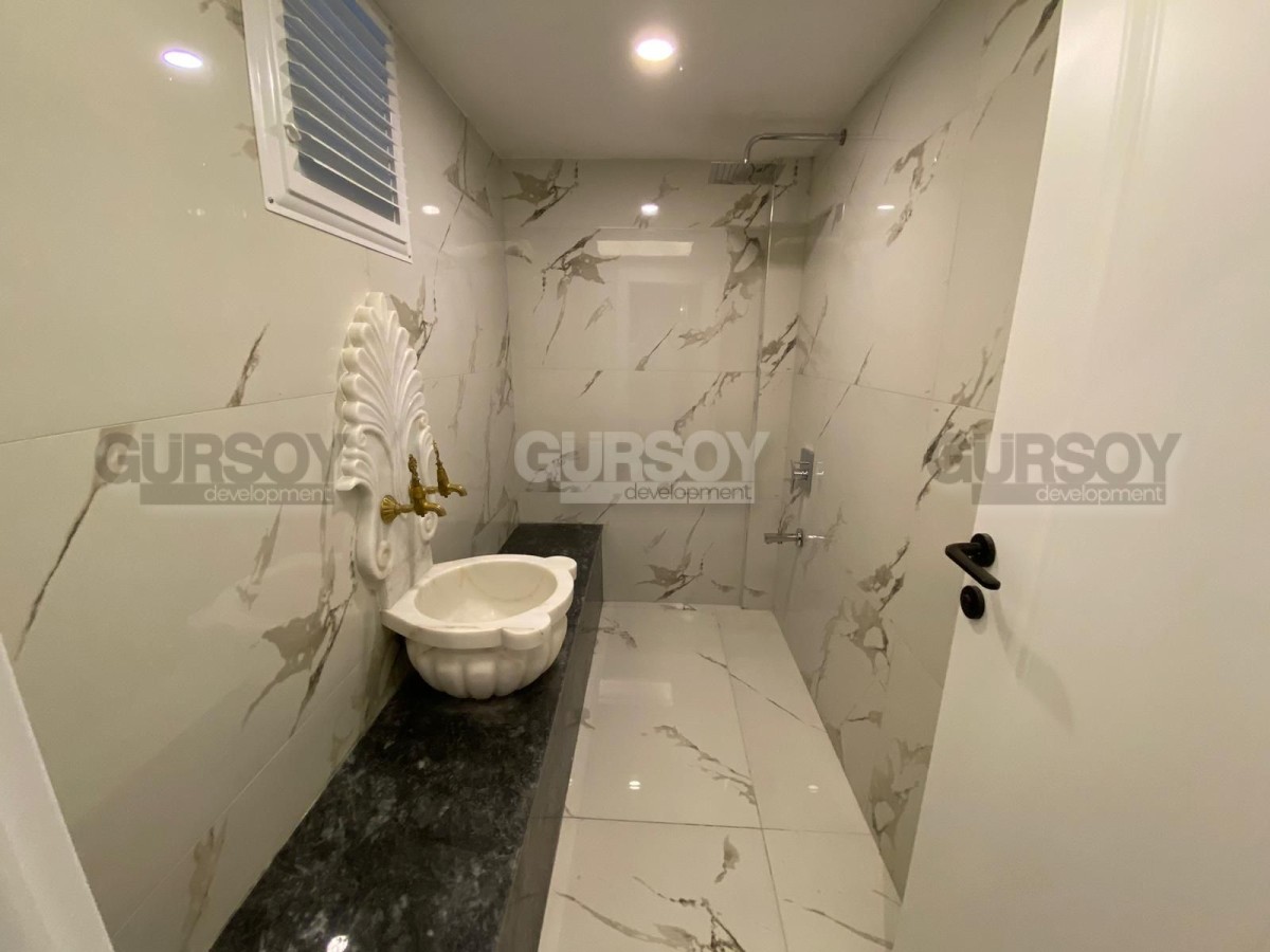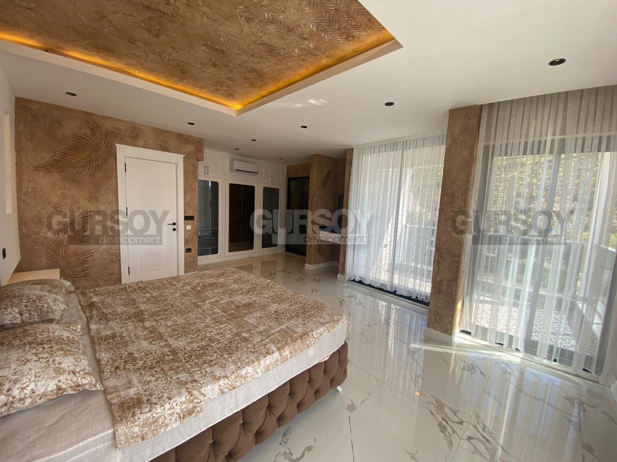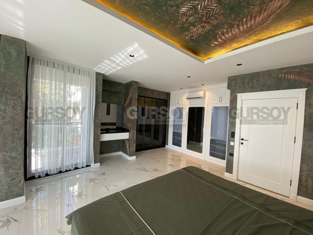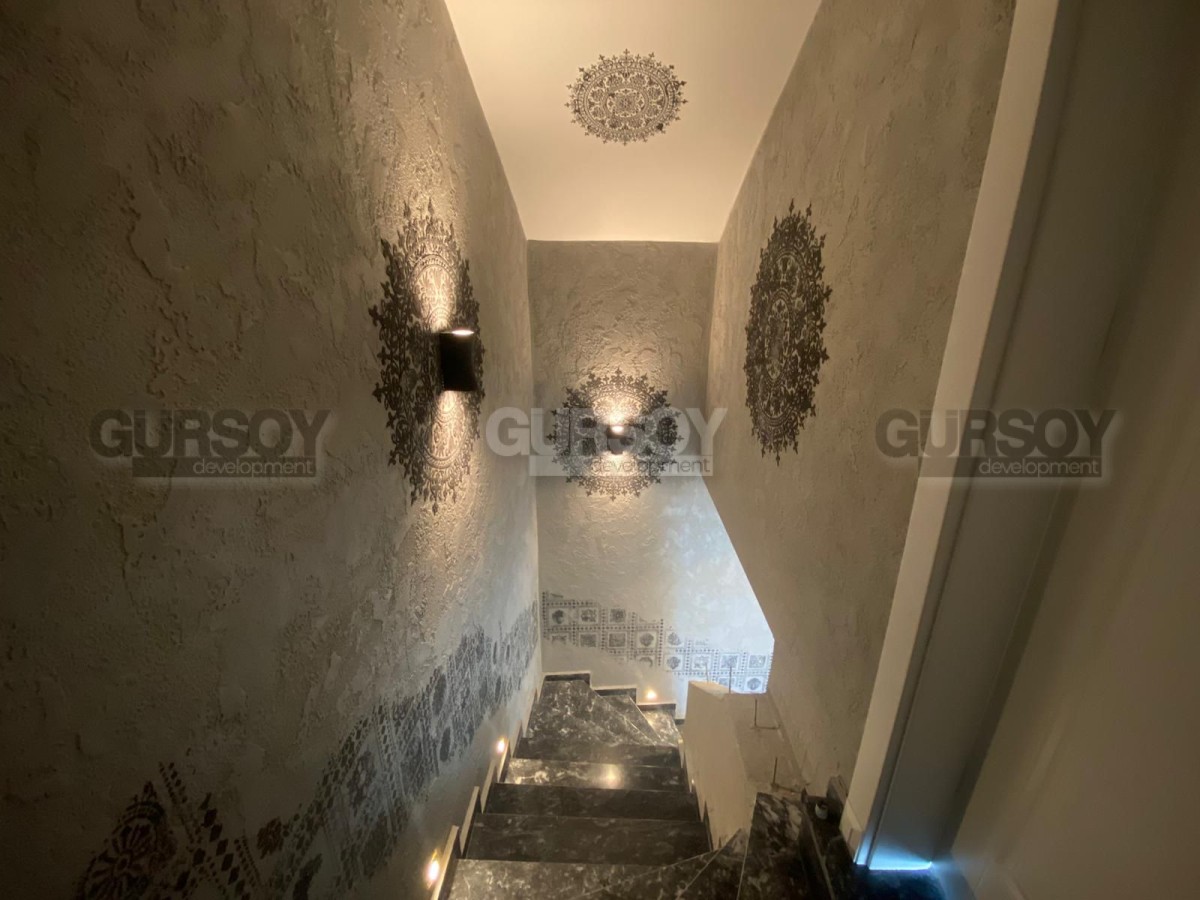 Вилла оснащена современными системами, включая полное отопление полов, дизайнерскую люксовую отделку и продуманное наружное освещение. У вас будет доступ к общему бассейну, а также к собственному бассейну, окруженному уютным садом. В дополнение к этому предусмотрены детская игровая площадка, сауна и хаммам с видом на море, которые добавят вашему отдыху максимум комфорта. Для автомобилей предусмотрен открытый гараж.