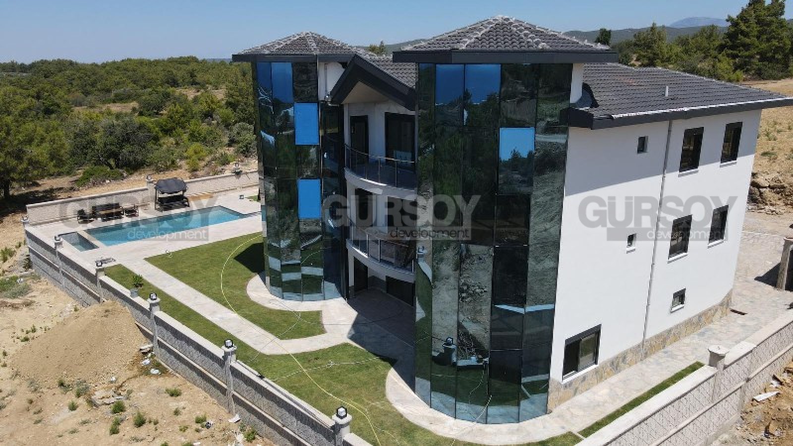 Вилла уже оснащена системой «умный дом», позволяющей дистанционно контролировать комфорт, автоматическими жалюзи, системой полива сада, и многими новейшими технологиями. На территории особняка оборудованы бассейн, зона барбекю, с беседкой и мангалом из натурального камня, и крытый паркинг.