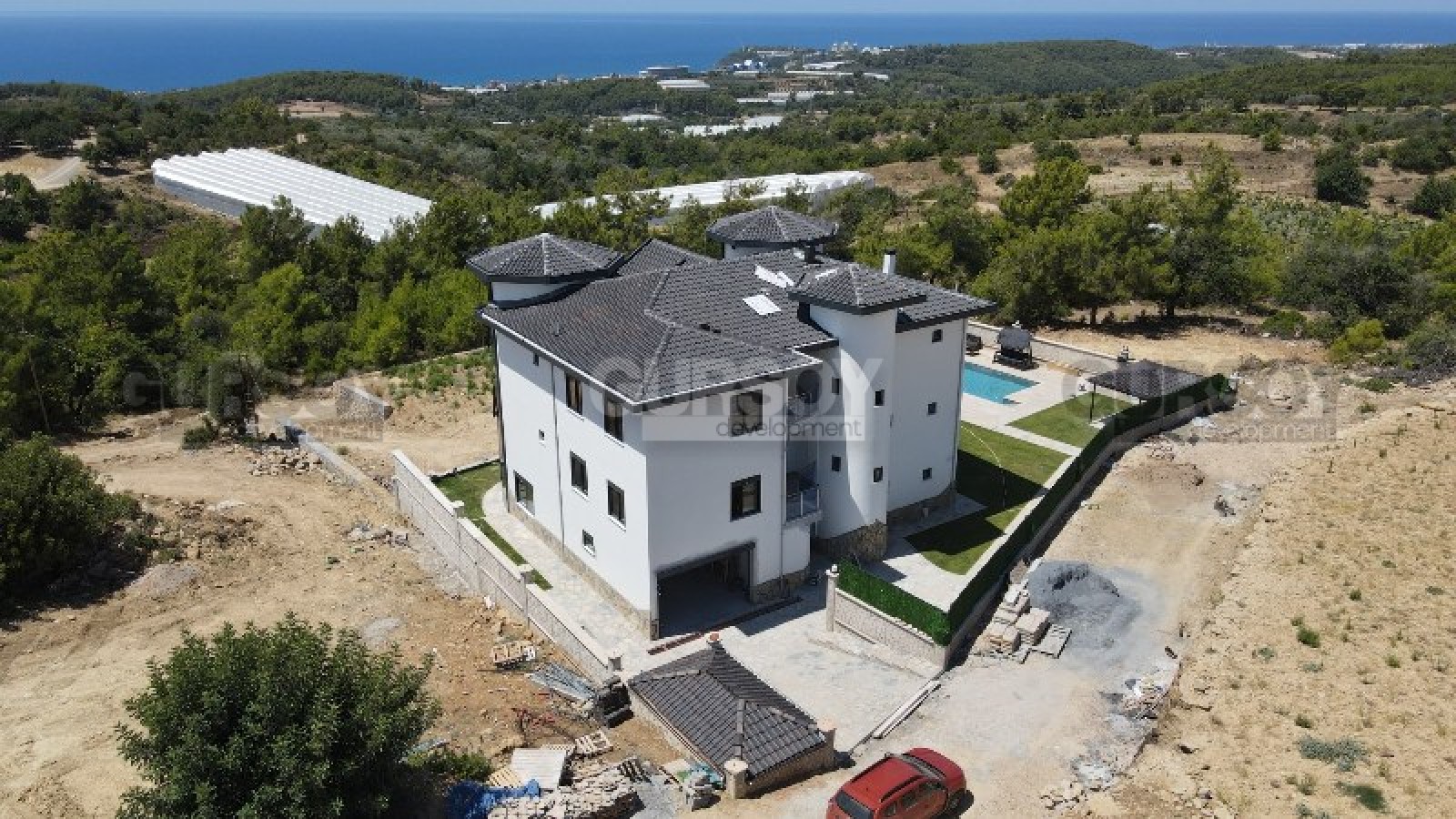Инжекум - живописный район Аланьи, недвижимость которого представлена, в основном, частными виллами и особняками, с собственными бассейнами и садами. В 2022 году тут завершилось строительство элитной трехэтажной виллы, общей площадью 660 м2, в планировке которой - три салона, кухни, восемь спален, санузлы, балконы и открытая терраса у бассейна. Дизайн виллы разработан по индивидуальному проекту, роскошная гостиная, с панорамными окнами и эксклюзивной люстрой, поражает величием и красотой, а сочетание белого цвета и светлого дерева в интерьере создает легкую, уютную атмосферу. Некоторые комнаты уже укомплектованы мебелью, но общий дизайн и обустройство комнат остается на усмотрение новых владельцев.