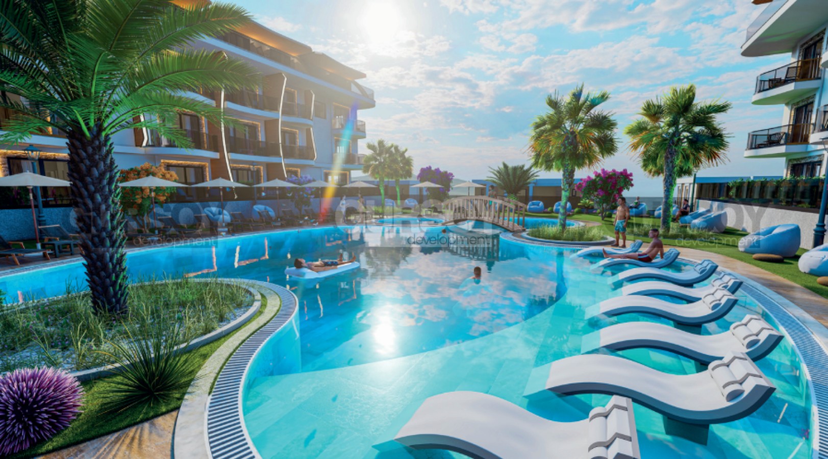 Инфраструктура комплекса продумана для комфорта, отдыха и активного образа жизни. Для поддержания физической формы предусмотрен современный фитнес-зал, теннисный корт и баскетбольная площадка. Любители расслабляющих процедур смогут посетить турецкий хамам, парную, солевую и массажную комнаты, а также раздельные сауны для мужчин и женщин. В зоне отдыха можно насладиться джакузи и комфортной атмосферой. Для водного отдыха доступны закрытый и открытый бассейны, а для детей — отдельный бассейн и игровая площадка.