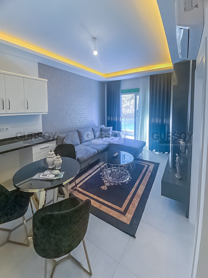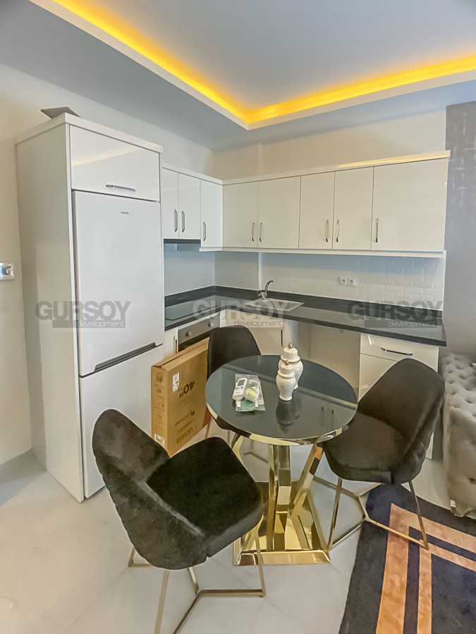 В данном этом разделе представлена комфортабельная квартира с мебелью и бытовой техникой, расположенная на 2-м этаже в жилом комплексе, введенном в эксплуатацию в 2023 году в районе Авсаллар. Квартира выставлена на продажу по очень доступной цене и может быть использована как для собственного проживания, так и для выгодной инвестиции. В планировке апартаментов, общей площадью 55 м2, совмещенная с кухней гостиная, спальня, укомплектованный душевой кабиной и стиральной машиной санузел и открытый балкон. Квартира - светлая и уютная, с современным лаконичным дизайном. В салоне установлены большой угловой диван, журнальный столик, тумба и компактный обеденный стол с мягкими стульями. Кухонный гарнитур оснащен холодильником, сенсорной варочной поверхностью и духовым шкафом, а в уютной спальне имеются тумбы и комфортабельная кровать.