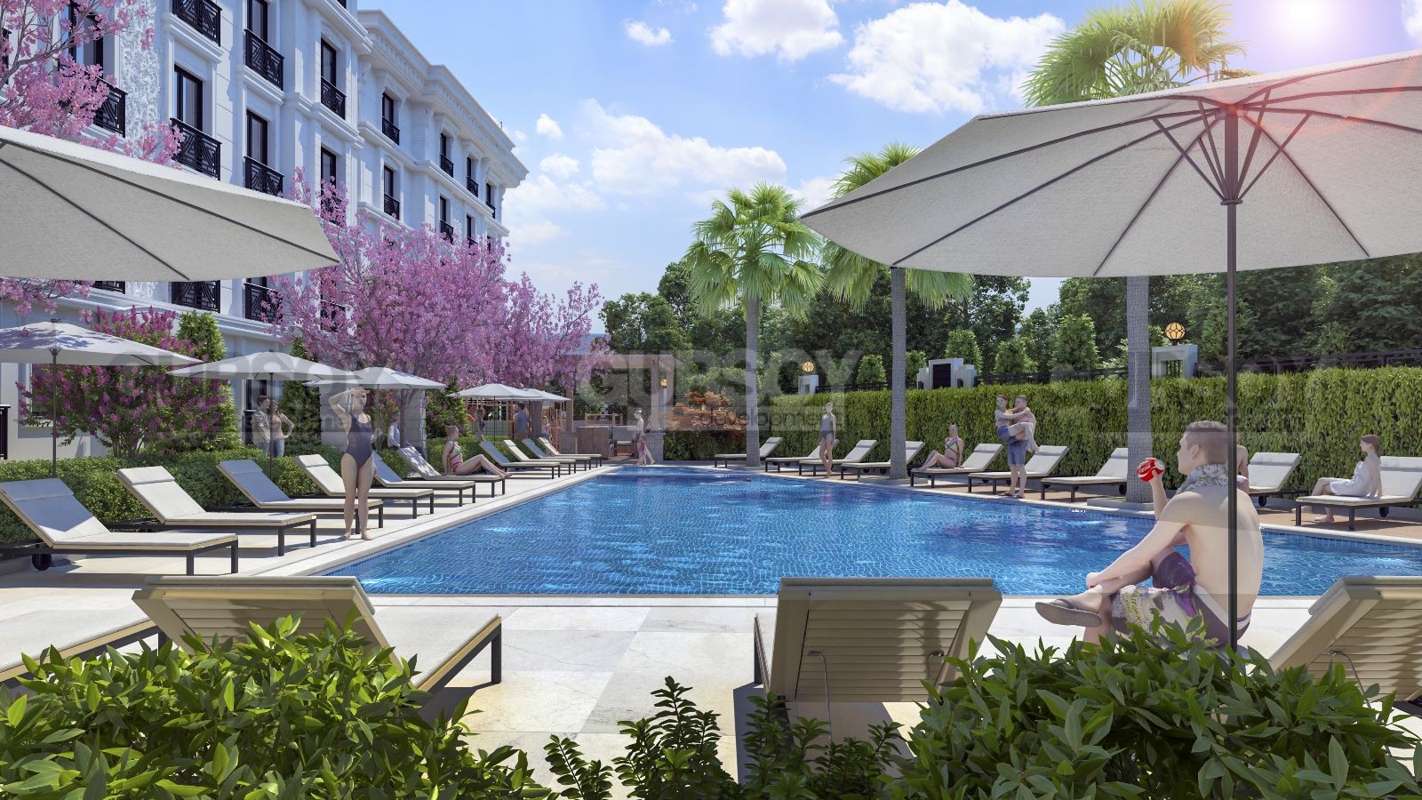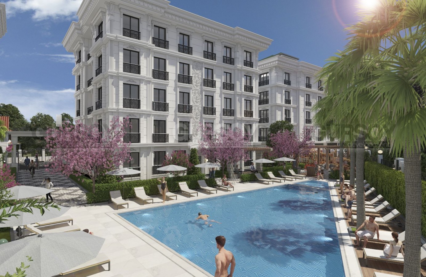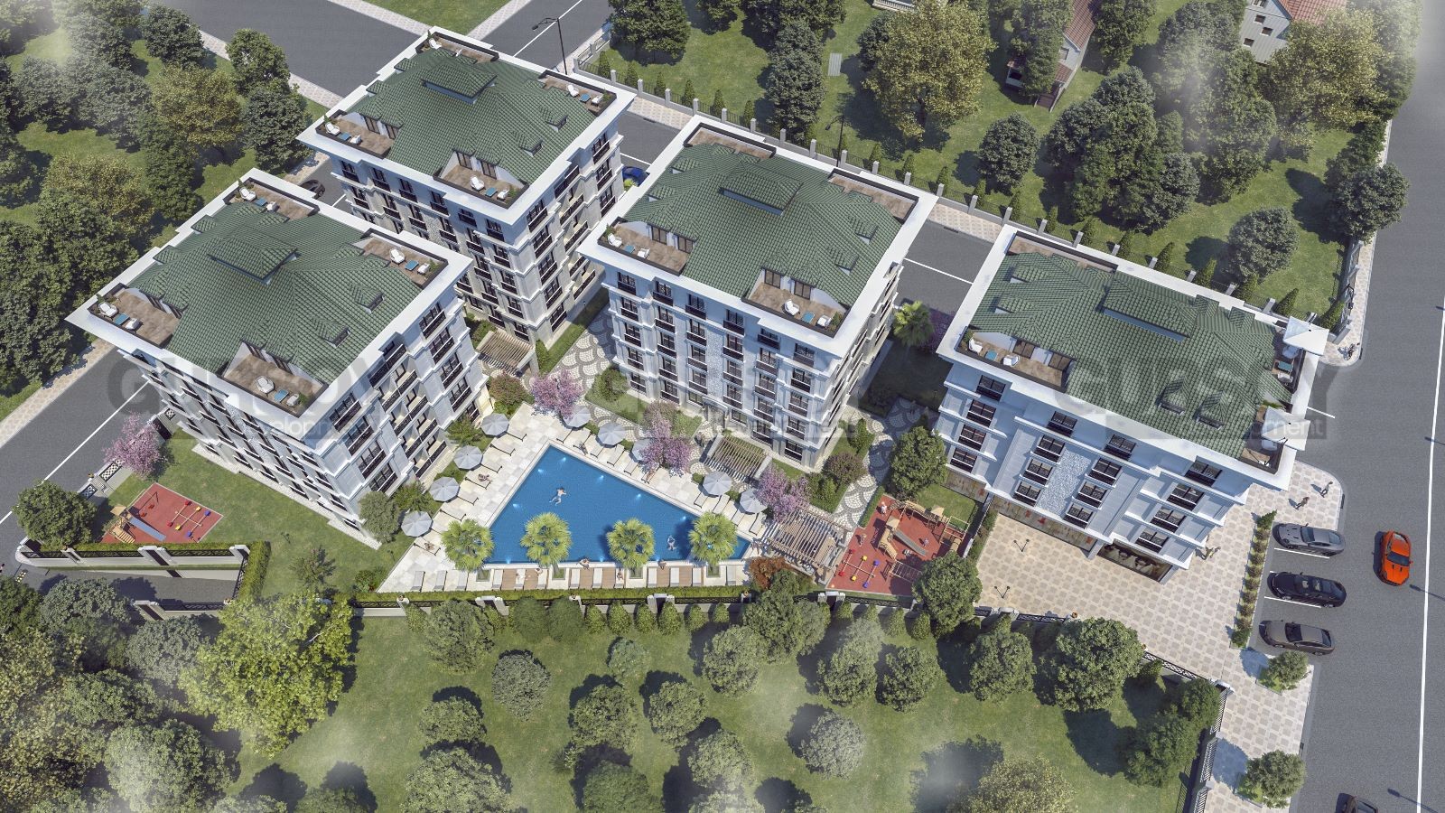Комплекс предлагает богатую инфраструктуру и широкий спектр удобств и услуг для жильцов. В его распоряжении находятся фитнес-центр, турецкая баня (хаммам), две детские площадки, открытый бассейн, сауна, паровая баня, крытая парковка и круглосуточная охрана, обеспечивающая безопасность и комфорт проживания.