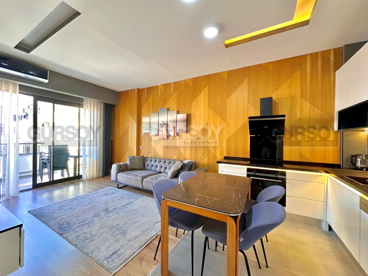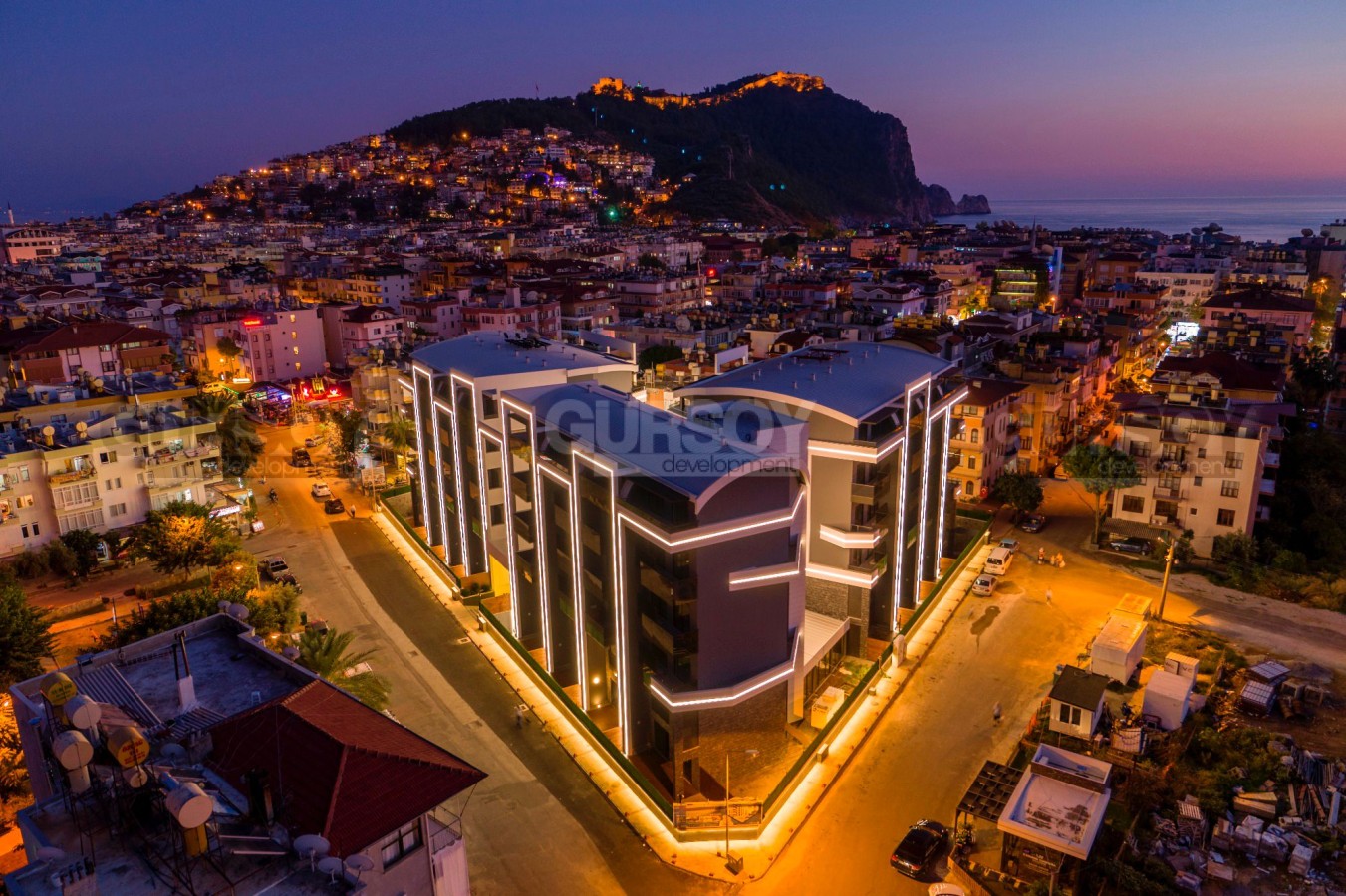 Эта уютная квартира планировки 1+1 расположена в современном жилом комплексе в центре Аланьи, всего в 350 метрах от пляжа Клеопатра. Квартира площадью 57м2 находится на 3-м этаже шестиэтажного здания, построенного в 2019 году.