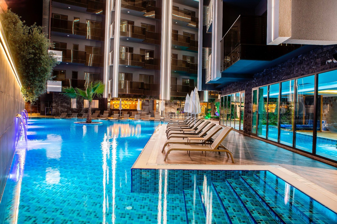 Комплекс расположен в районе с отлично развитой инфраструктурой. В пешей доступности находятся магазины, кафе, рестораны и остановки общественного транспорта. Пляж Клеопатра — один из лучших на побережье — всего в 350 метрах от дома, что делает эту квартиру особенно привлекательной для аренды или отдыха.