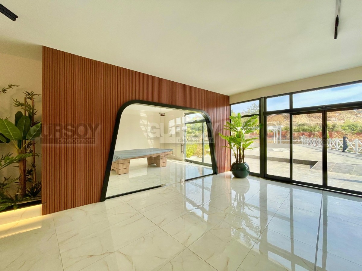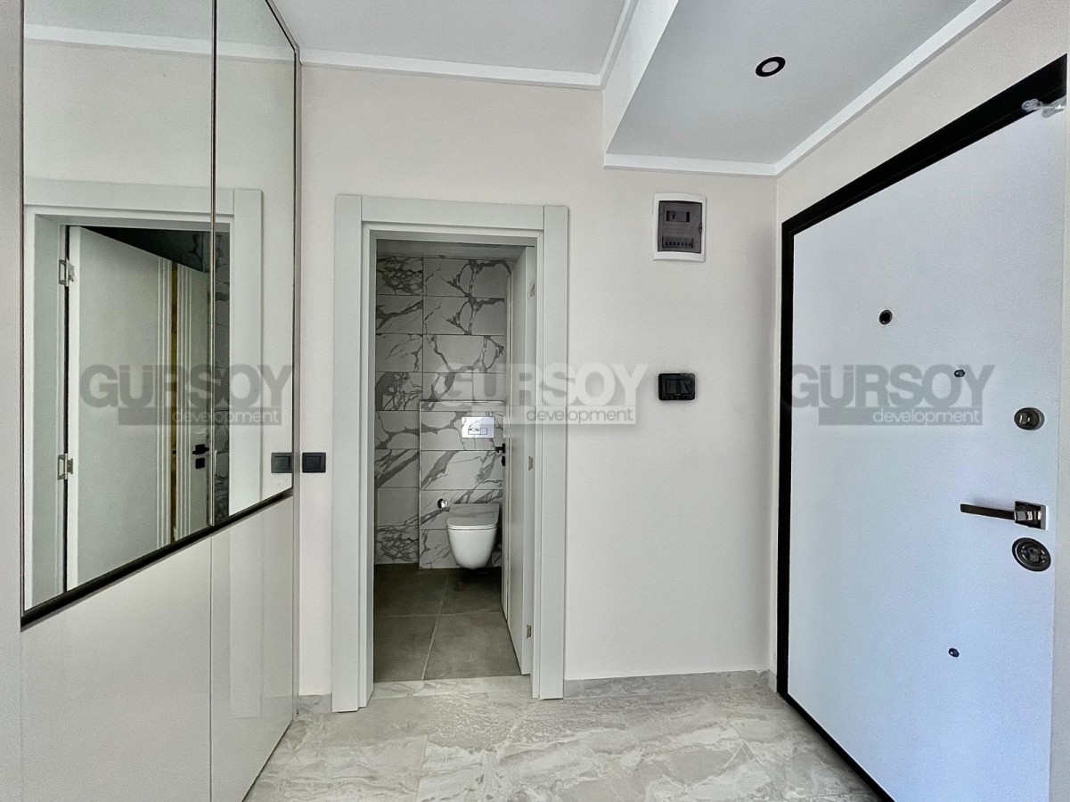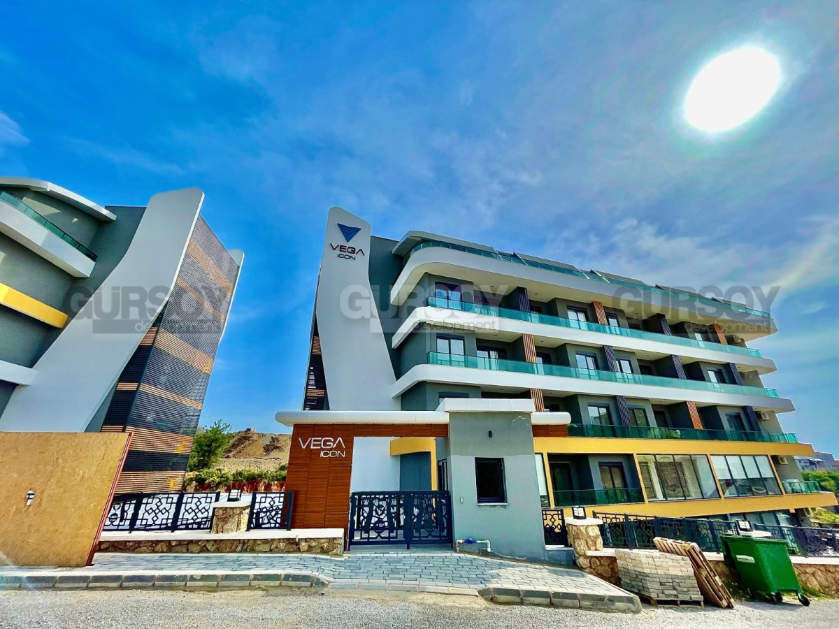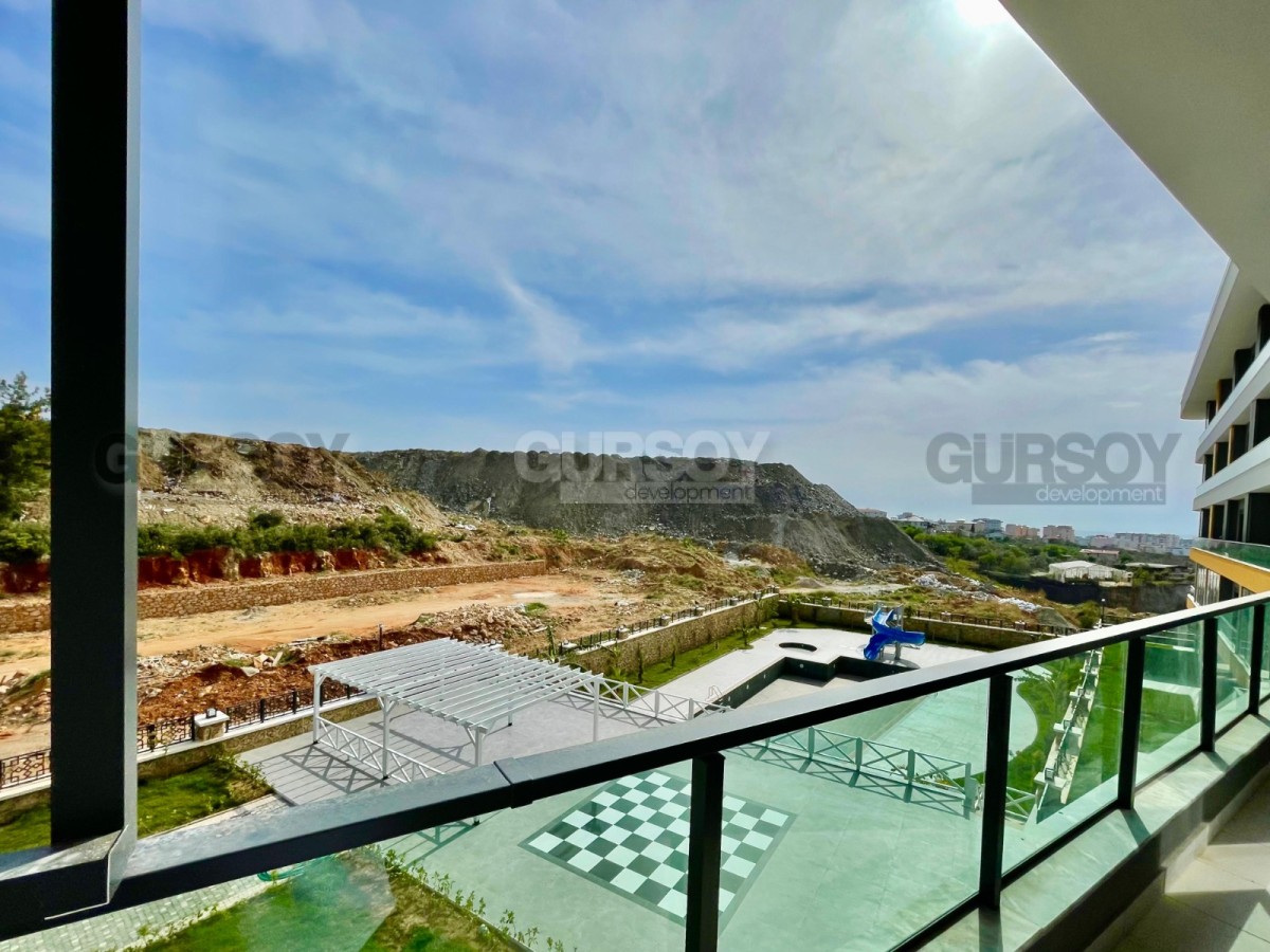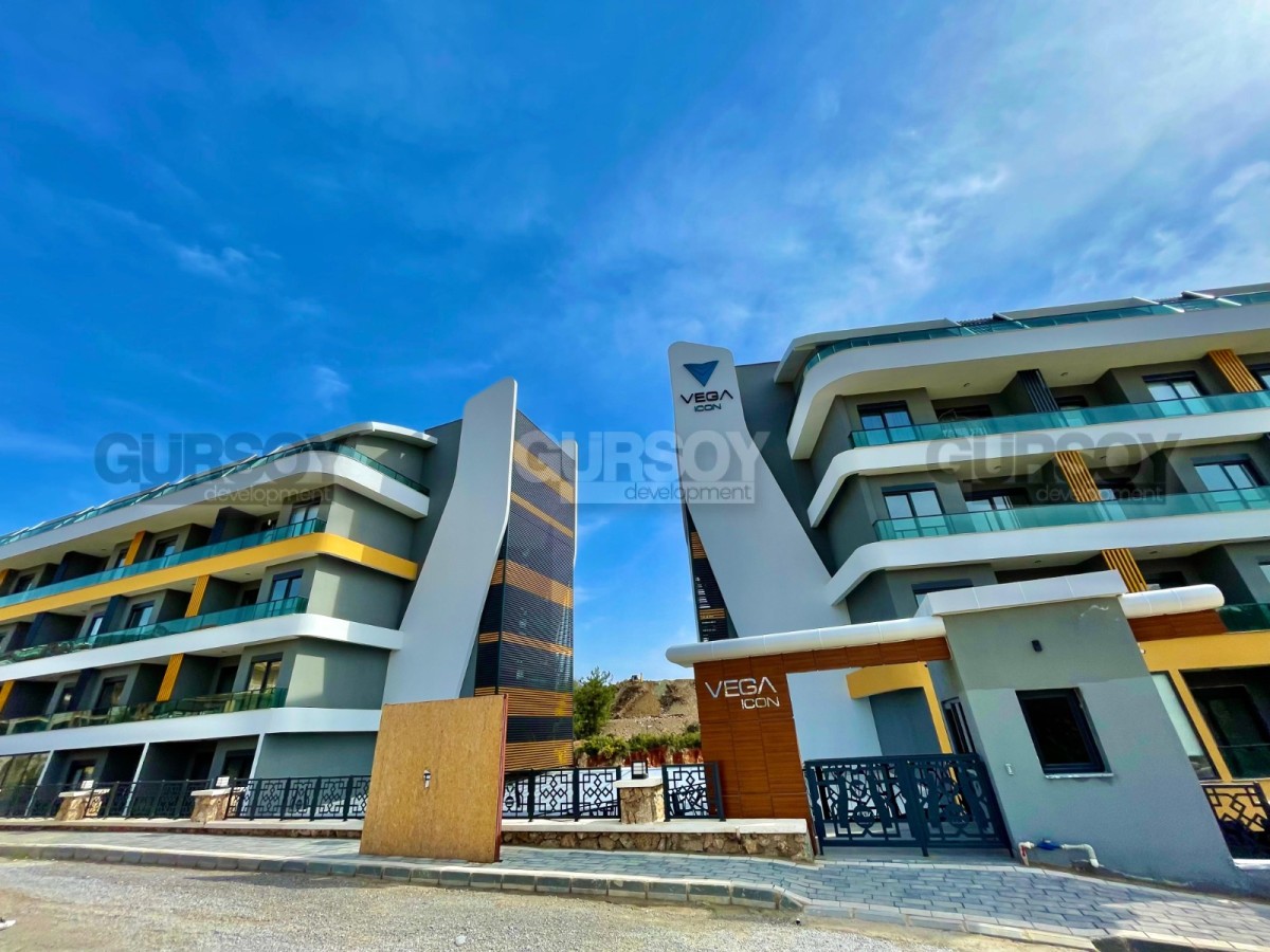 В данном комплексе предлагается квартира планировки 1+1, общей площадью 55 м², расположенная на 3-м этаже. Дом построен в 2024 году. Квартира продаётся без мебели, что даёт возможность обустроить пространство полностью под свой вкус. Планировка включает гостиную с кухонной зоной, одну спальню, ванную комнату и балкон. Из окон открывается приятный вид на бассейн комплекса.