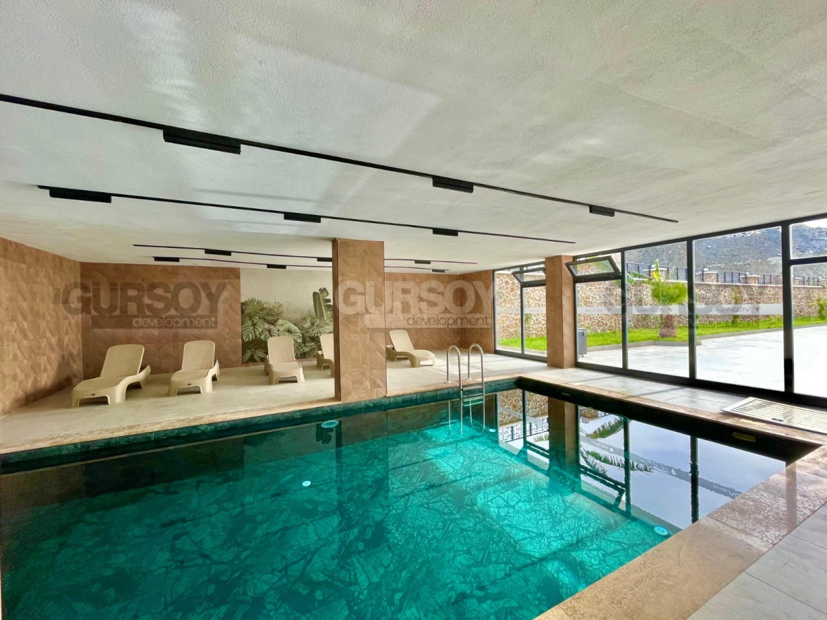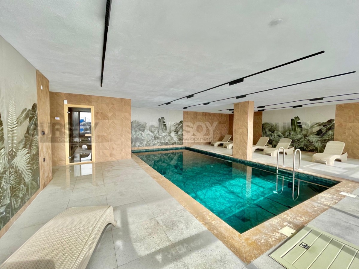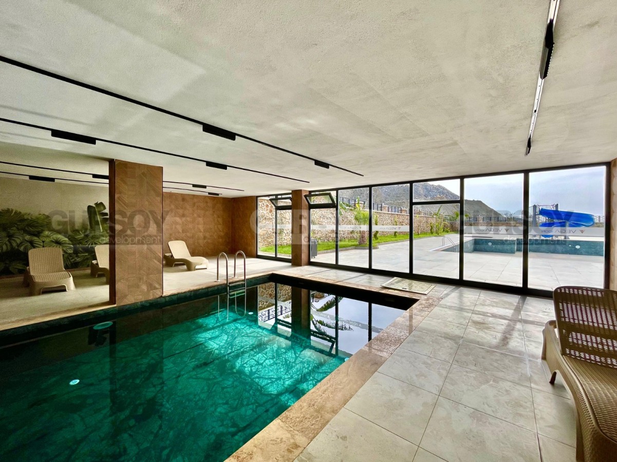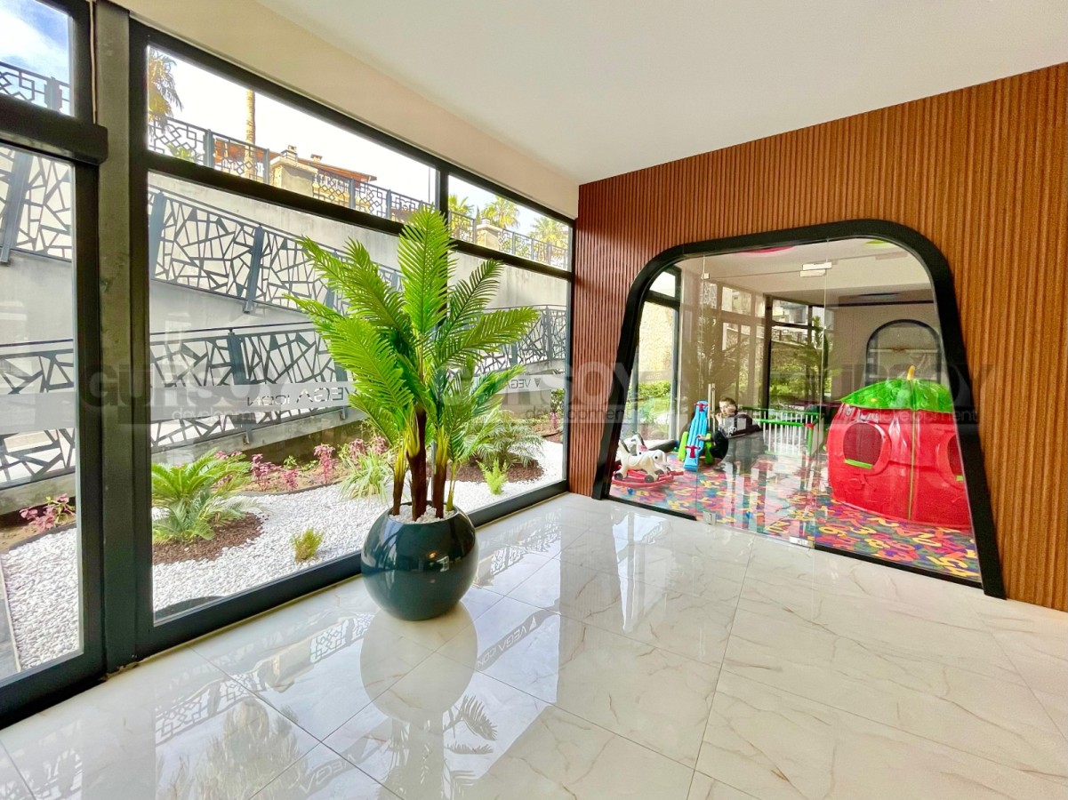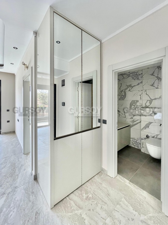 В данном комплексе предлагается квартира планировки 1+1, общей площадью 55 м², расположенная на 3-м этаже. Дом построен в 2024 году. Квартира продаётся без мебели, что даёт возможность обустроить пространство полностью под свой вкус. Планировка включает гостиную с кухонной зоной, одну спальню, ванную комнату и балкон. Из окон открывается приятный вид на бассейн комплекса.