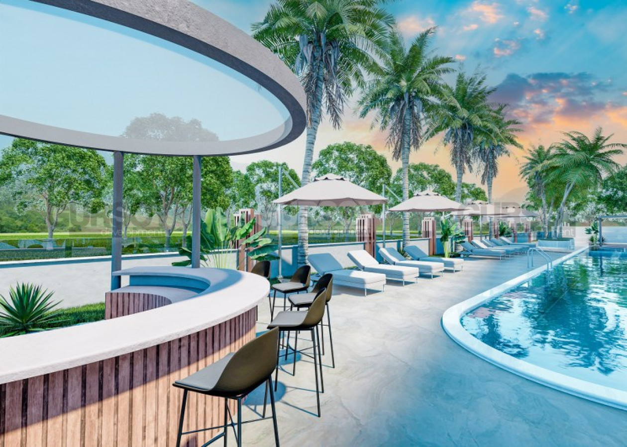 Инфраструктура современного комплекса включает: открытый бассейн, фитнес, джакузи и тд.