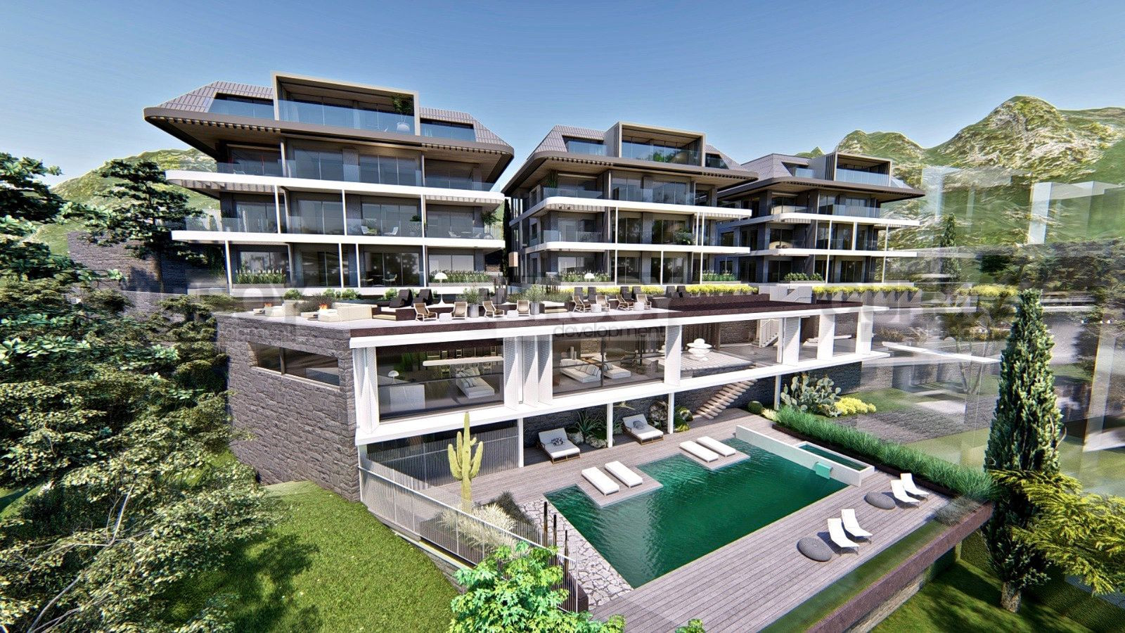 Премиальный комплекс состоит из 5и жилых блоков, с общей площадью участка в 2760 м2. Апартаменты представлены в разных планировок: 1+1, (51м2 - 61м2), 2+1 (114м2- 138м2) также есть садовые сьюты и дублексы.