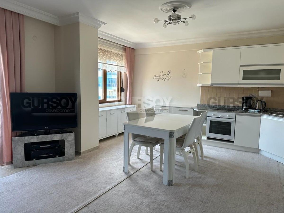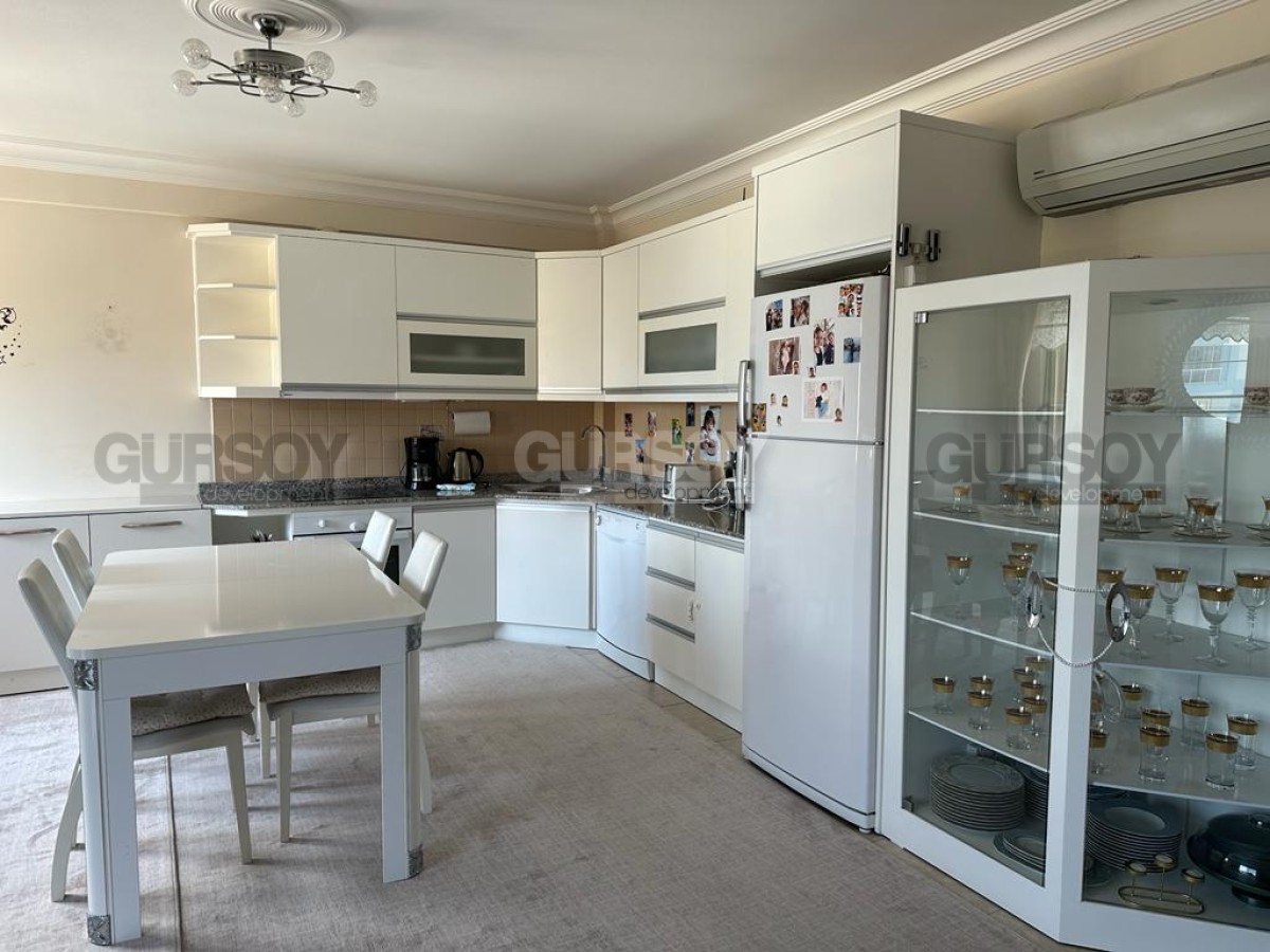 Вашему вниманию представлена просторная линейная квартира 2+1, общей площадью 120 м2, расположенная на 3-м этаже в жилом комплексе, построенном в 2012 году в центре современного района Аланьи - Махмутлар. В планировке квартиры - кухня открытого типа, совмещенная с салоном, 2 спальни, 2 санузла, в которых установлены душевая кабина и ванна, и 2 застекленных балкона с видом на город и море. Квартира - светлая и уютная, с простым лаконичным дизайном. Гостиная укомплектована мягким угловым диваном, стильным креслом и журнальным столиком. В зоне кухни расположены обеденный стол, сервант и просторная рабочая поверхность, оснащенная холодильником, посудомоечной машиной, сенсорной варочной плитой и духовым шкафом. В спальнях установлены комфортабельные кровати, тумбы и гардеробный шкаф, а на одном из балконов организована зона отдыха, с компактной садовой мебелью.