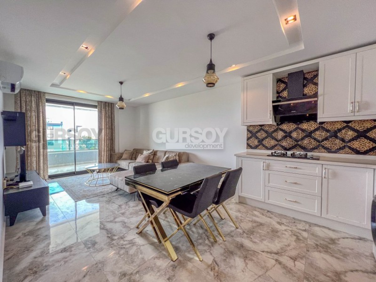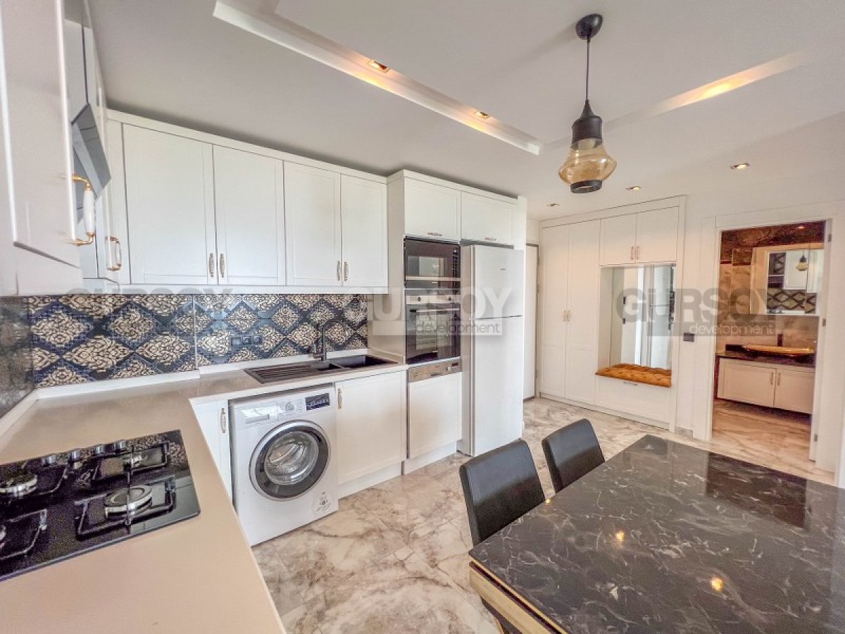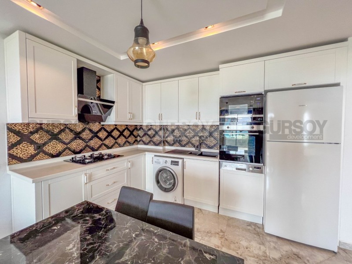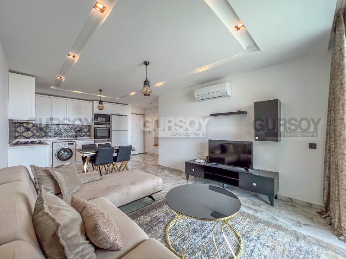В живописном, спокойном районе Аланьи - Каргыджак, на 4-м этаже в новом жилом комплексе, введённом в эксплуатацию в 2022 году, выставлена на продажу небольшая комфортабельная квартира, которая наверняка придётся по вкусу любителям современных дизайнов. В планировке квартиры, общей площадью 60 м2, - совмещённая с кухней гостиная, спальня, оснащённый душевой кабиной санузел и просторный открытый балкон, с панорамным видом на море. В светлом интерьере комнат преобладают монохромные тёплые оттенки, удачно дополненные мягким точечным освещением, элементами золота и стильной комфортабельной мебелью. Гостиная укомплектована угловым диваном, журнальным столиком, тумбой и стильным обеденным столом. Просторный кухонный гарнитур оснащён холодильником, стиральной и посудомоечной машинами, сенсорной поверхностью и духовым шкафом. В уютной спальне установлены: большая кровать, тумбы и вместительный гардеробный шкаф, а на балконе организована зона отдыха, с практичной садовой мебелью.