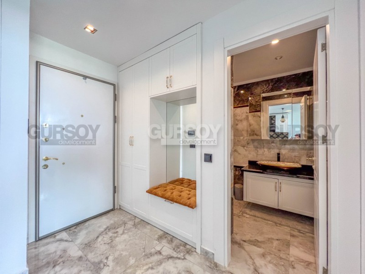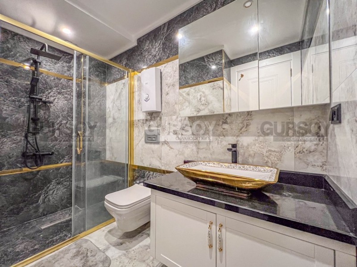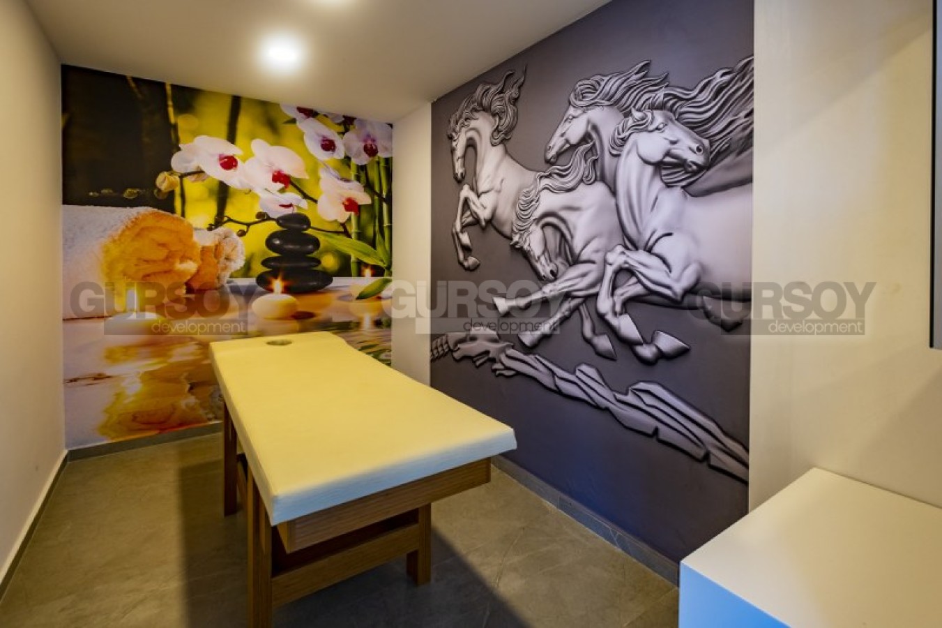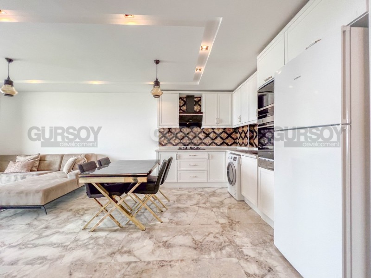 В живописном, спокойном районе Аланьи - Каргыджак, на 4-м этаже в новом жилом комплексе, введённом в эксплуатацию в 2022 году, выставлена на продажу небольшая комфортабельная квартира, которая наверняка придётся по вкусу любителям современных дизайнов. В планировке квартиры, общей площадью 60 м2, - совмещённая с кухней гостиная, спальня, оснащённый душевой кабиной санузел и просторный открытый балкон, с панорамным видом на море. В светлом интерьере комнат преобладают монохромные тёплые оттенки, удачно дополненные мягким точечным освещением, элементами золота и стильной комфортабельной мебелью. Гостиная укомплектована угловым диваном, журнальным столиком, тумбой и стильным обеденным столом. Просторный кухонный гарнитур оснащён холодильником, стиральной и посудомоечной машинами, сенсорной поверхностью и духовым шкафом. В уютной спальне установлены: большая кровать, тумбы и вместительный гардеробный шкаф, а на балконе организована зона отдыха, с практичной садовой мебелью.