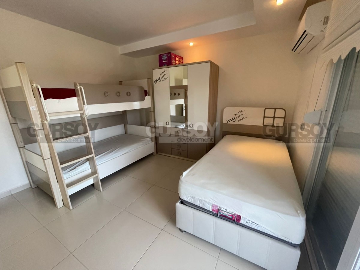 Если вам по душе спокойный, размеренный образ жизни в окружении живописной природы, предлагаем вашему вниманию комфортабельную, меблированную квартиру в престижном районе Аланьи - Кестель. Расположена она на 3-м этаже в резиденции 2016 года постройки, и имеет общую площадь 120 м2, на которых расположились: совмещенная с кухней гостиная, 2 спальни, 2 санузла, укомплектованных душевыми кабинами, и 2 открытых балкона. Квартира - светлая, с теплыми оттенками в интерьере и минимумом ярких акцентов. В гостиной организована зона отдыха, с комфортабельными креслами, диваном, журнальным столиком и тумбой; в зоне кухни установлены обеденный стол и гарнитур, оснащенный холодильником, посудомоечной машиной и духовым шкафом. Спальни укомплектованы кроватями, гардеробными шкафами, тумбами и трюмо, а в прихожей имеется встроенный гардеробный шкаф. Также в квартире есть набор садовой мебели для террасы.