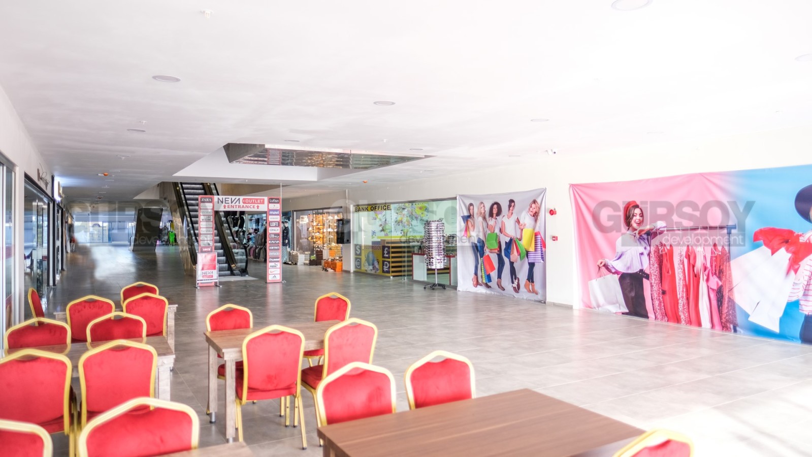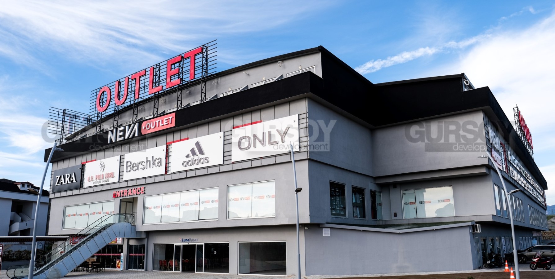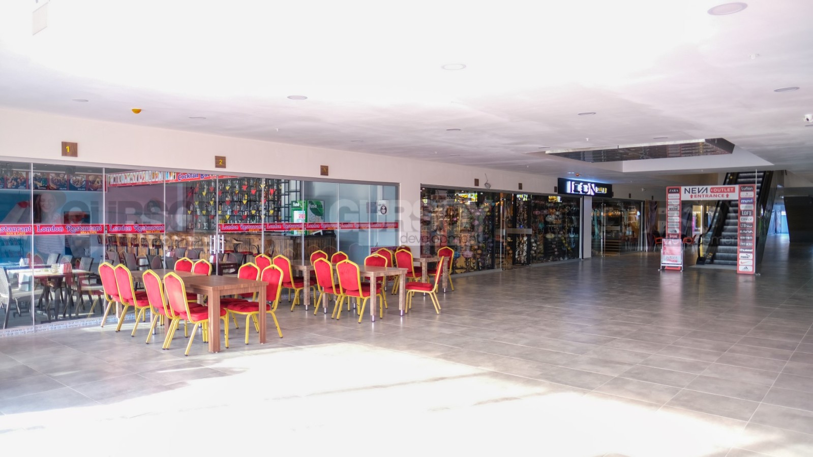 Торговый центр открыл свои двери посетителям летом 2021 года, он состоит из 2 этажей и 80 магазинов с мировыми брендами - Adidas, Puma, Reebok и другими.