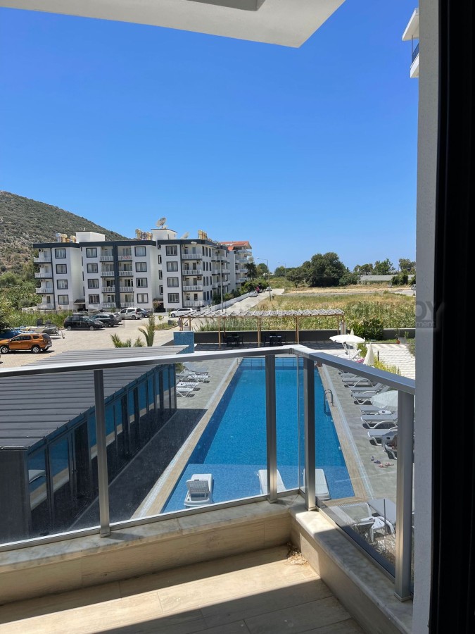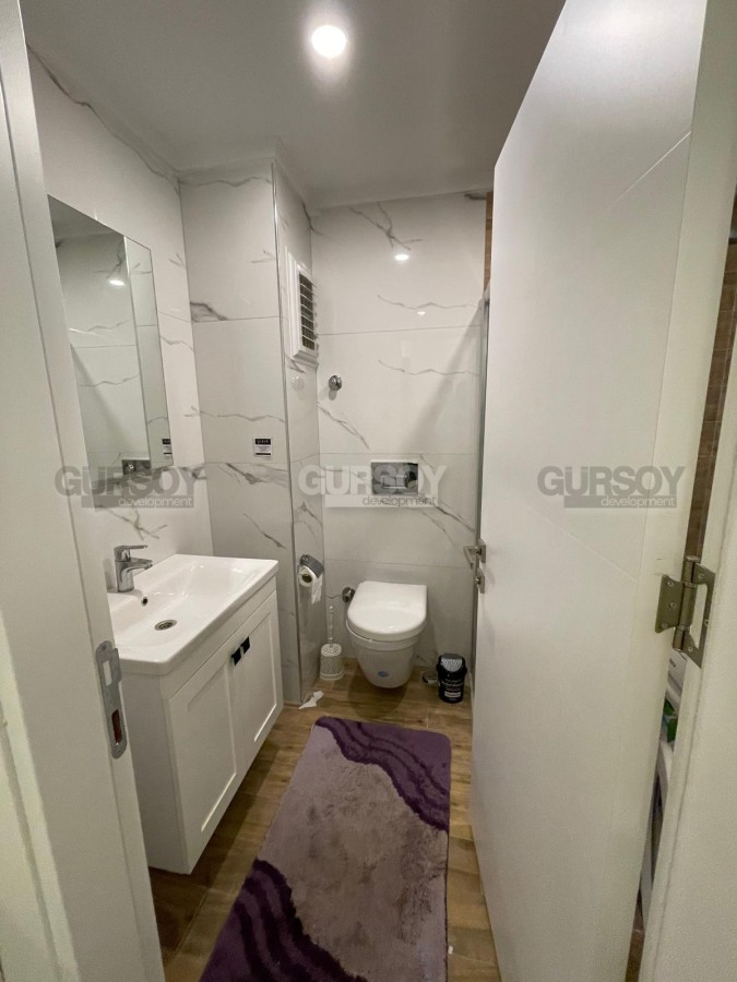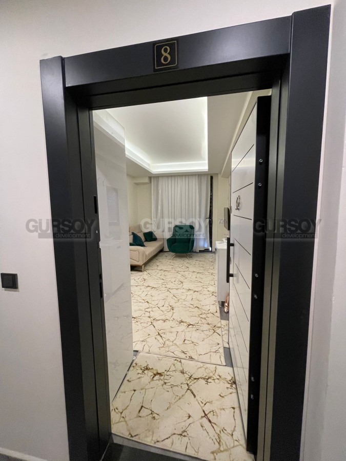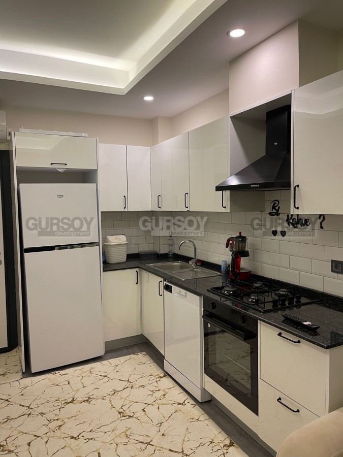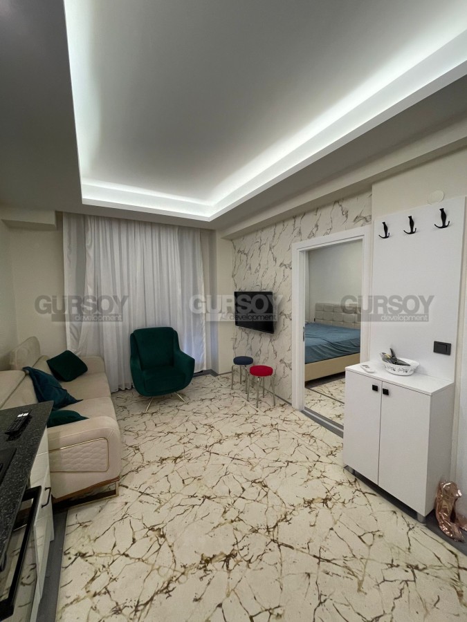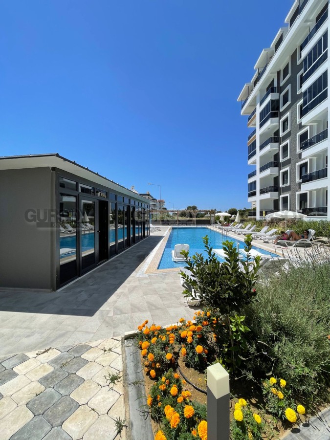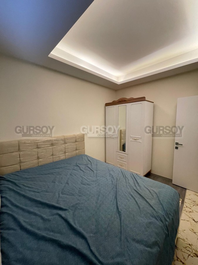 В начале 2023 года в центре зеленого, экологически чистого района Аланьи - Газипаша была введена в эксплуатацию небольшая резиденция, на 2-м этаже которой выставлена на продажу квартира. Небольшая, общей площадью 48 м2, с совмещенной с кухней гостиной, спальней, санузлом и балконом, она прекрасно подходит как для собственного проживания, так и для сдачи в аренду. Квартира - светлая и уютная, укомплектована всей необходимой мебелью и бытовой техникой. В гостиной организована уютная зона отдыха, с мягким диваном и креслом, практичный кухонный уголок оснащен холодильником, посудомоечной машиной и духовым шкафом, а в спальне установлены: большая кровать и вместительный гардеробный шкаф.