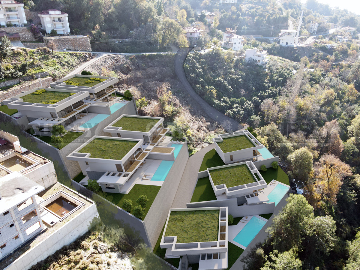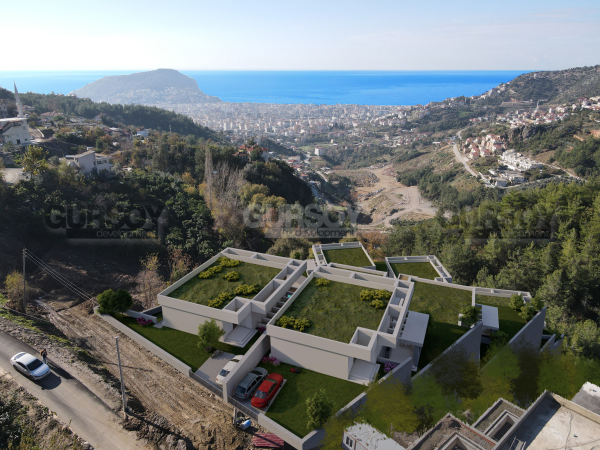 Представляем вашему вниманию новый проект вилл в элитном районе Тепе. Жилой комплекс будет включать в себя 7 отдельно стоящих вилл планировкой 4+1. У каждой виллы будет собственный сад и бассейн, а также будут открываться панорамные виды на крепость Аланьи, сосновые леса и Средиземное море.