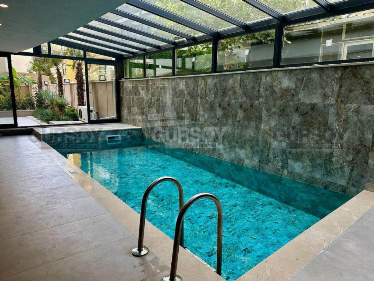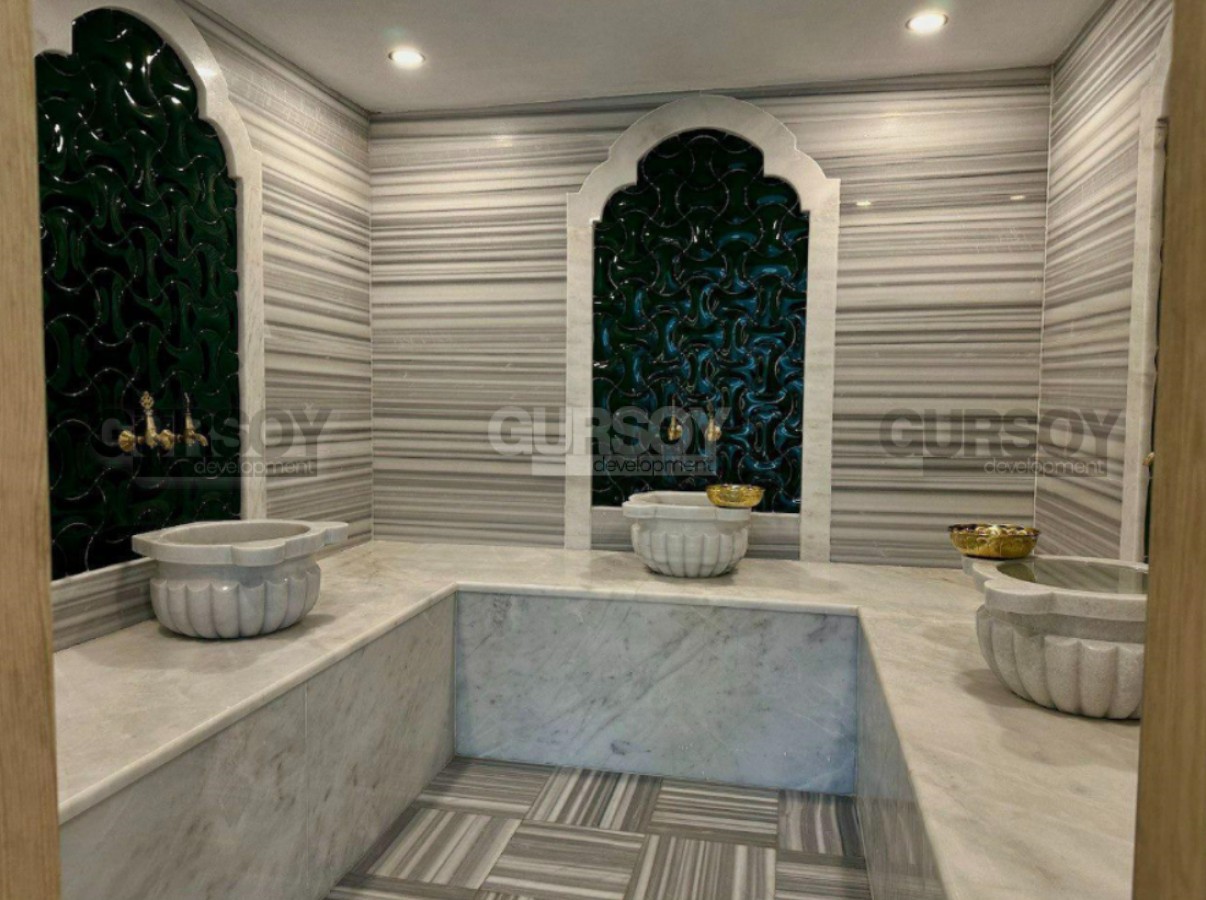 Инфраструктура комплекса включает открытый и закрытый бассейн, сауну, тренажерный зал и парковку, обеспечивая максимальный комфорт и удобство для жильцов. Вдобавок, комплекс находится под круглосуточной охраной, что гарантирует безопасность.
